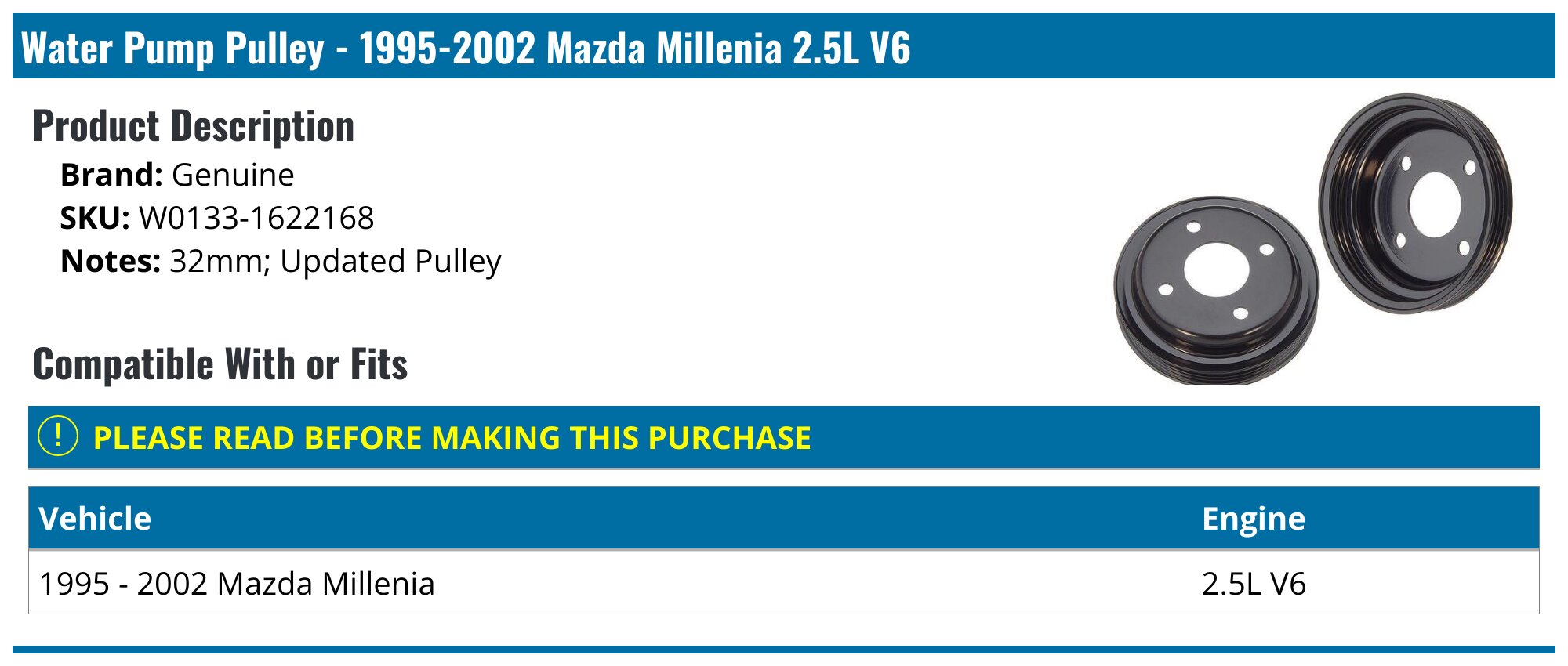 19952002 Mazda Millenia Water Pump Genuine W01331622168
