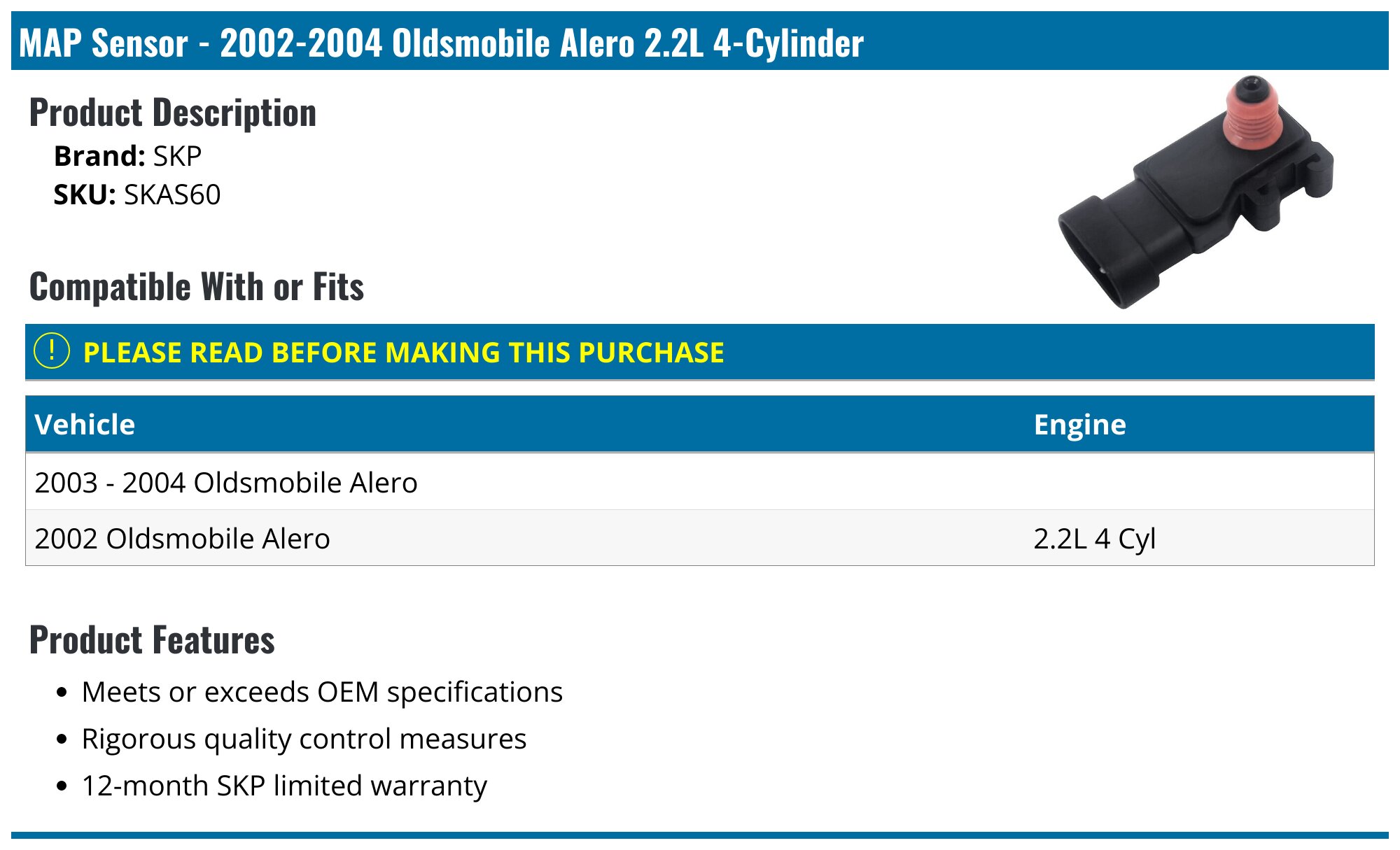 20022004 Oldsmobile Alero MAP Sensor SKP SKAS60