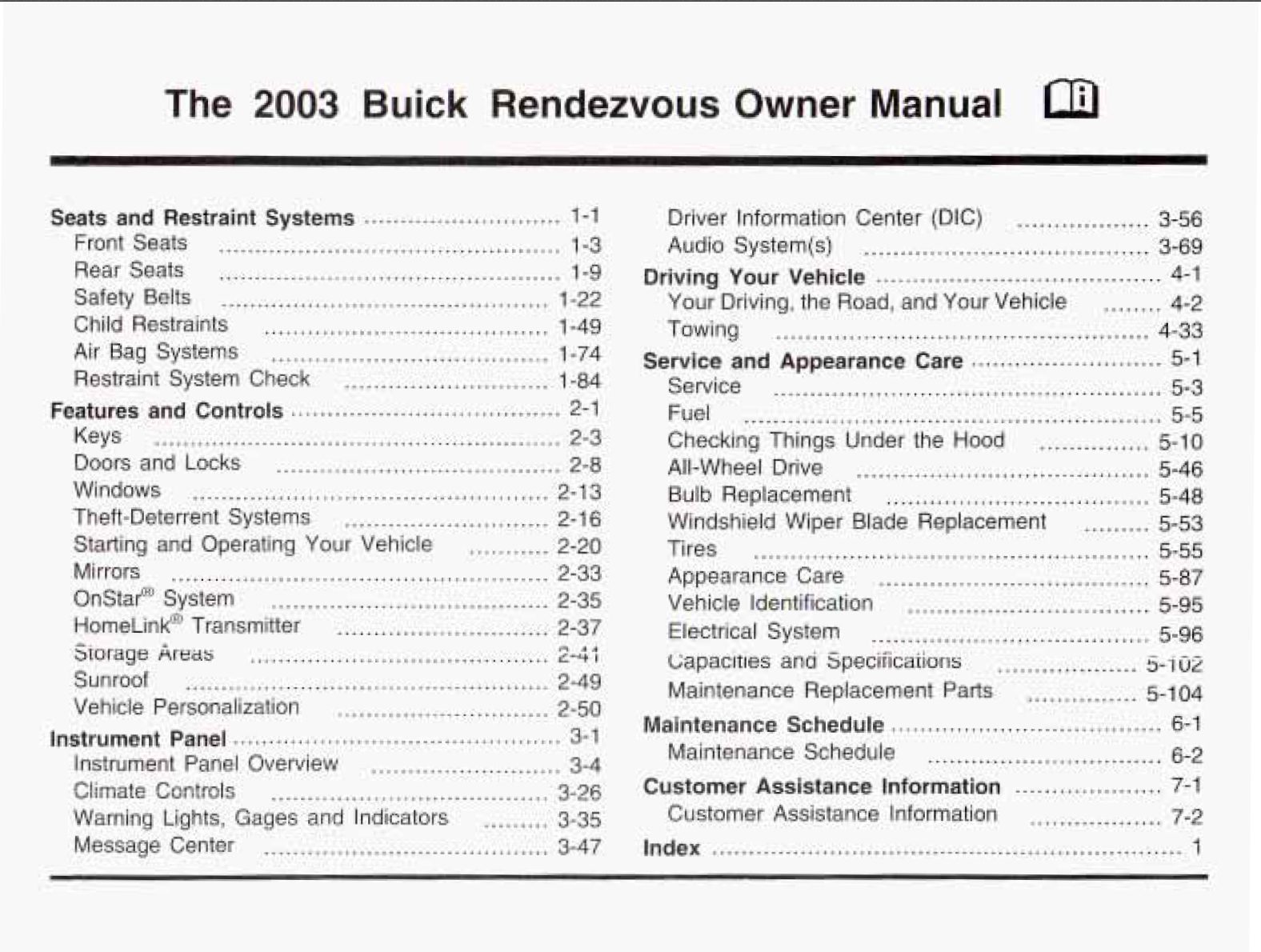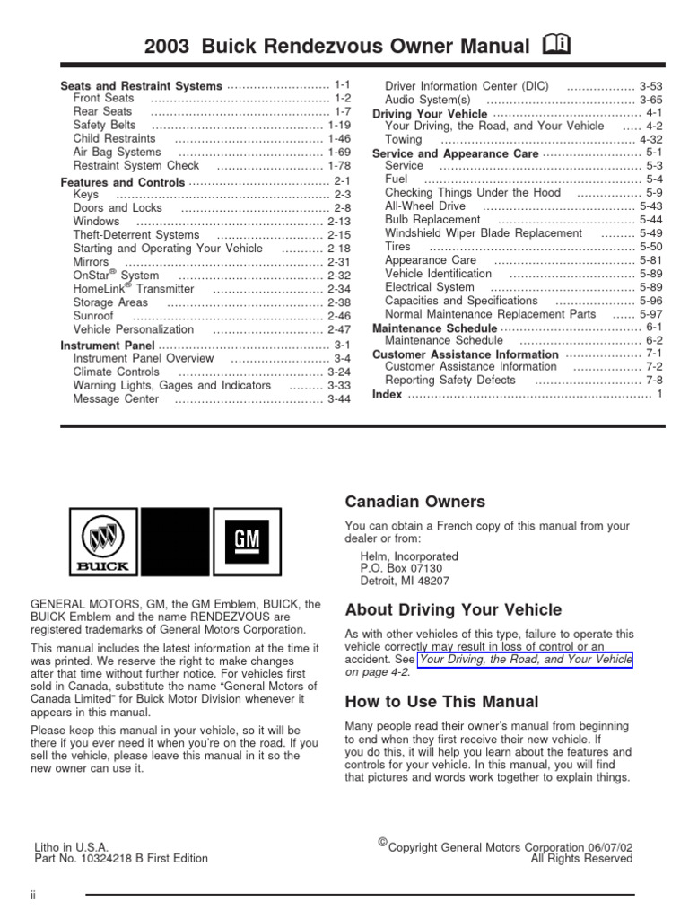 2003 Buick Rendezvous Owner's Manual DIY & Guides