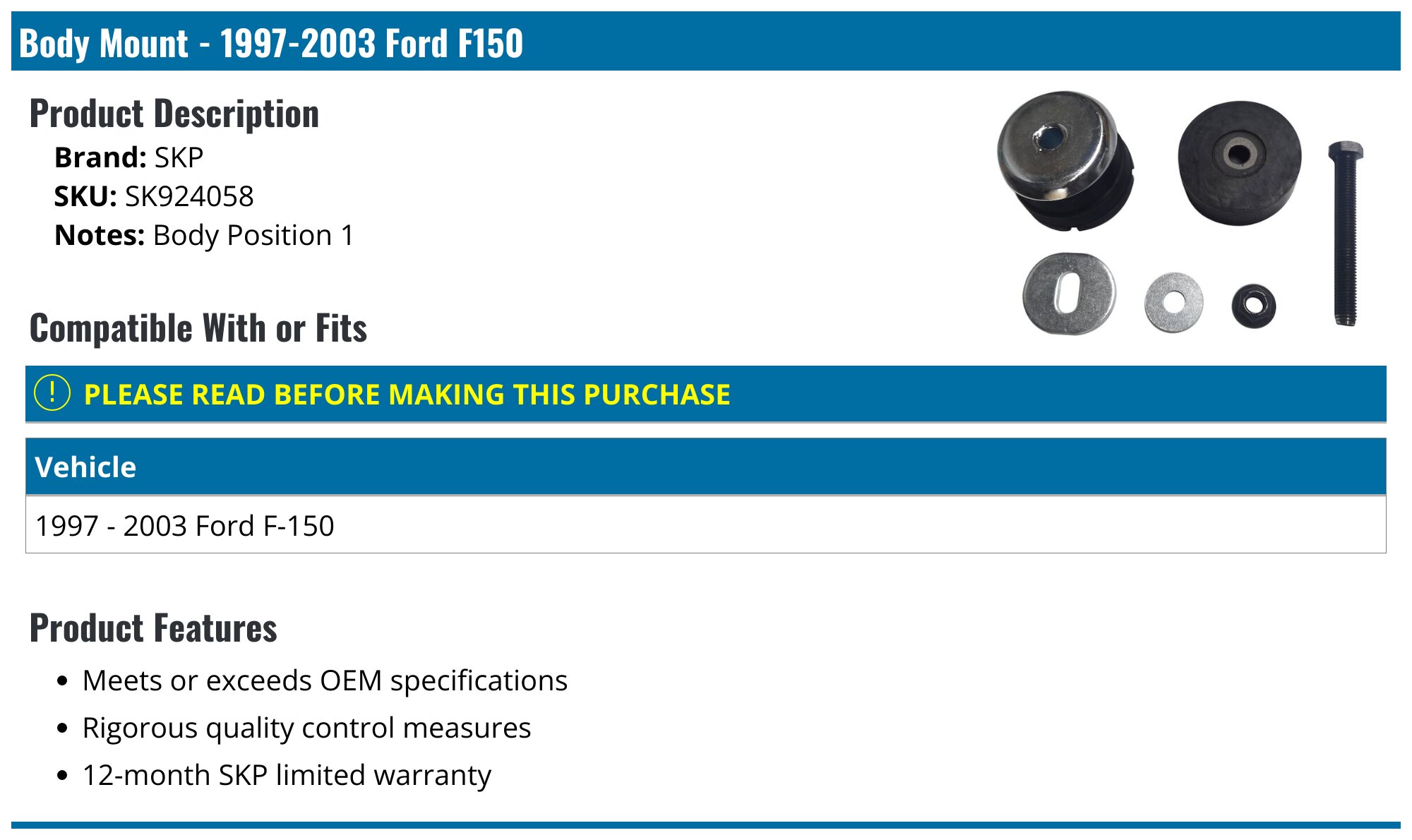19972003 Ford F150 Body Mount SKP SK924058