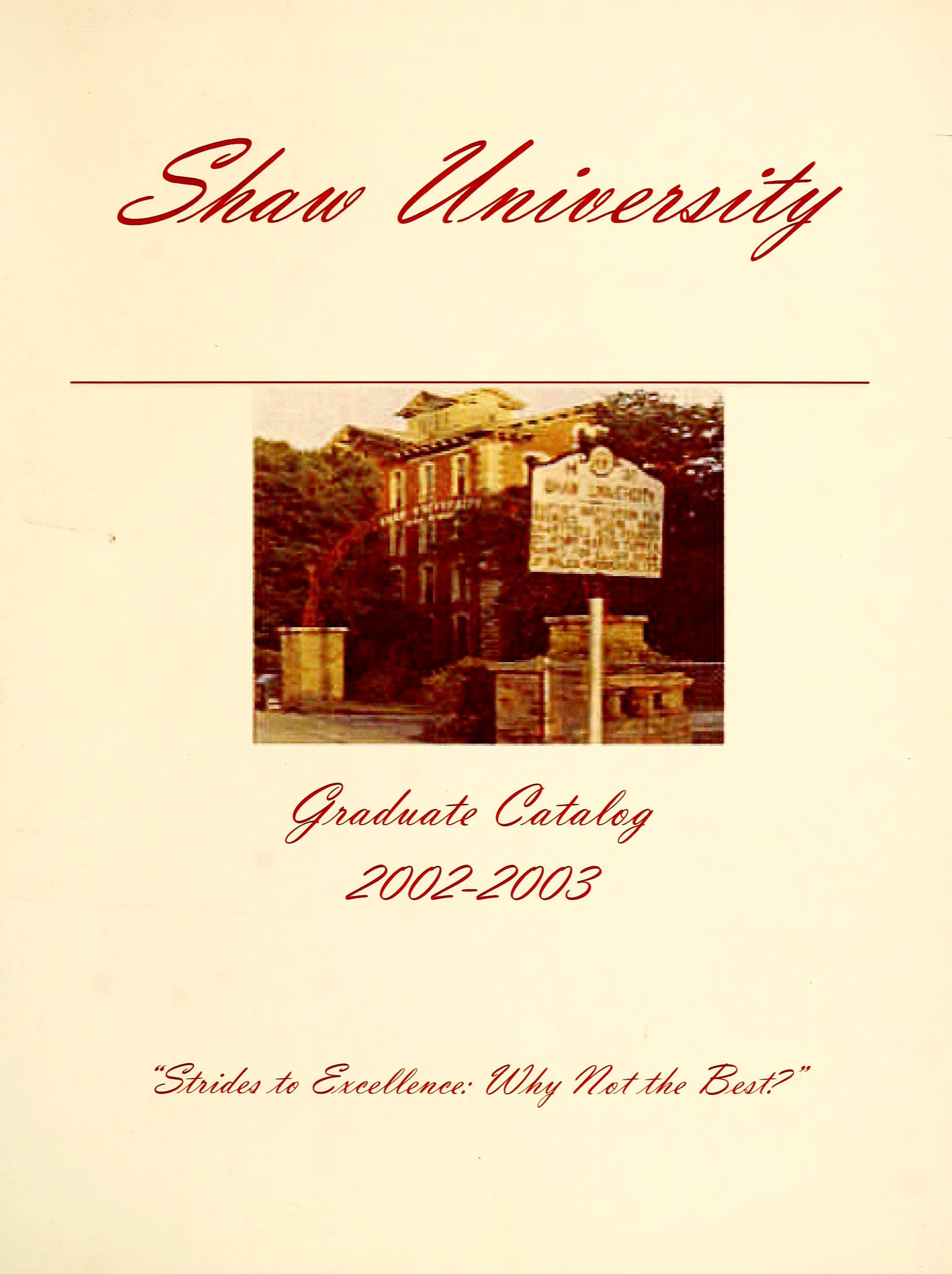 ![Shaw University Graduate Catalog [20022003]](https://lib.digitalnc.org/record/32319/files/yearbooks_006150-001.jpg)