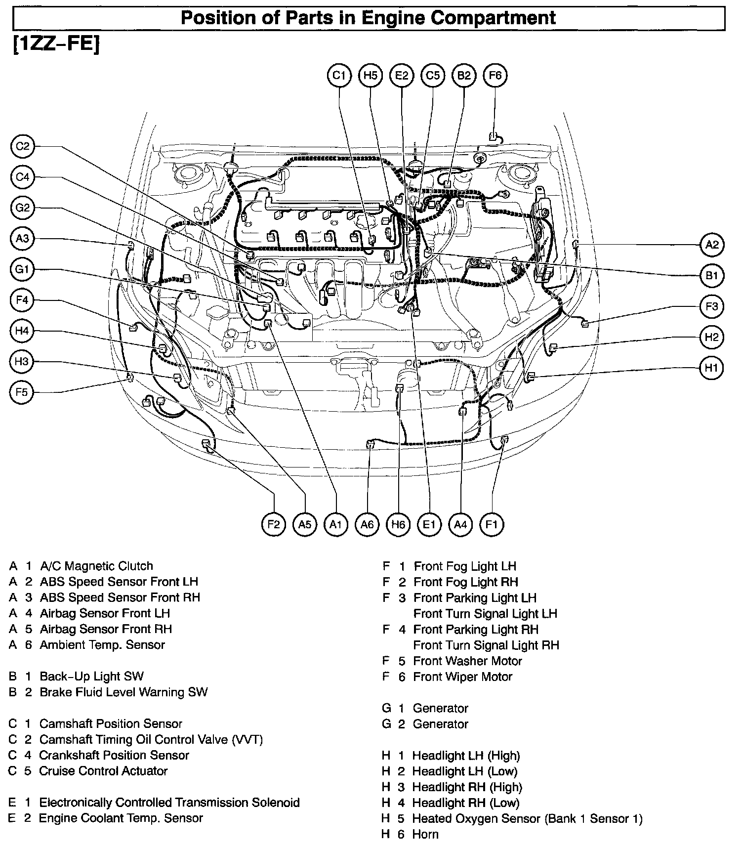 Position of Parts In Engine Compartment — 2003 Toyota Matrix 2WD L41