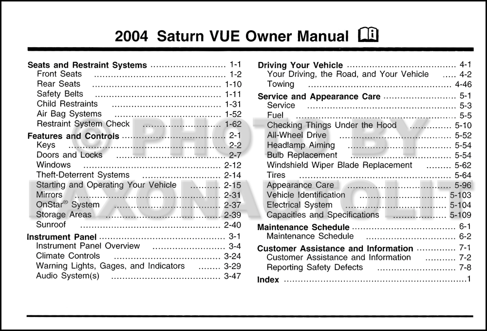 2004 Saturn Vue owners manual free pdf