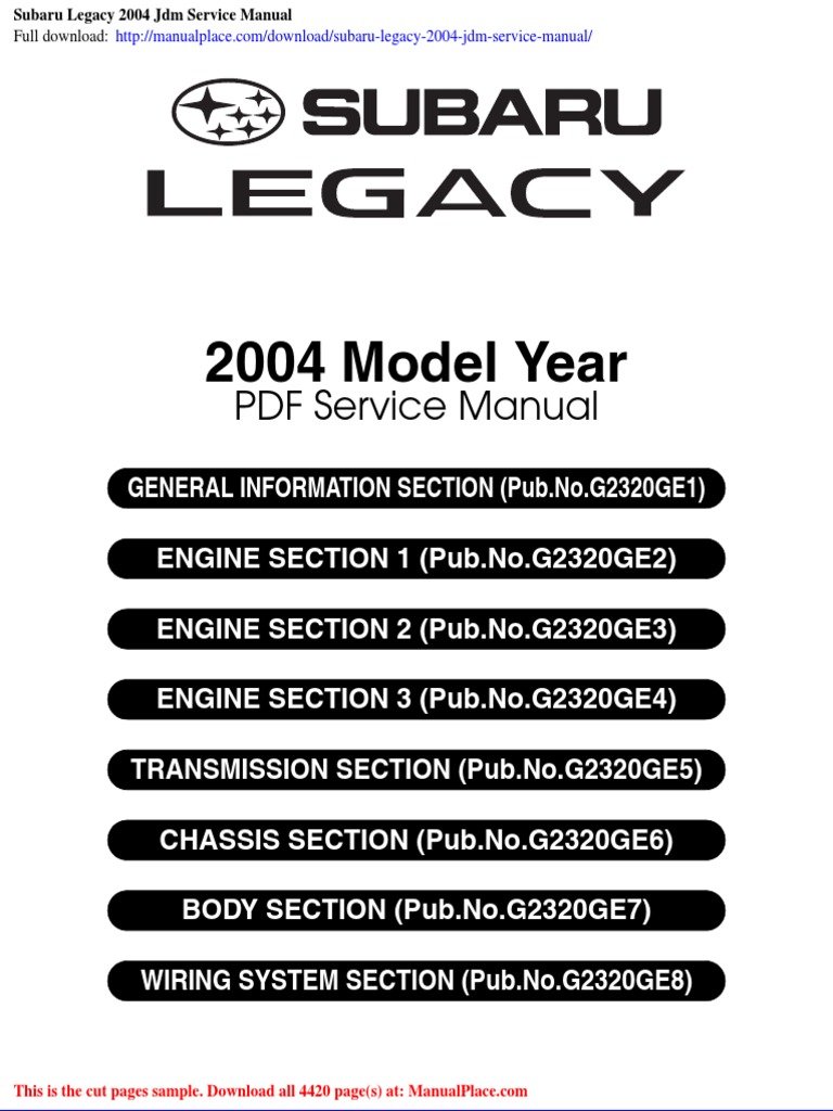 Subaru Legacy 2004 Service Guide PDF