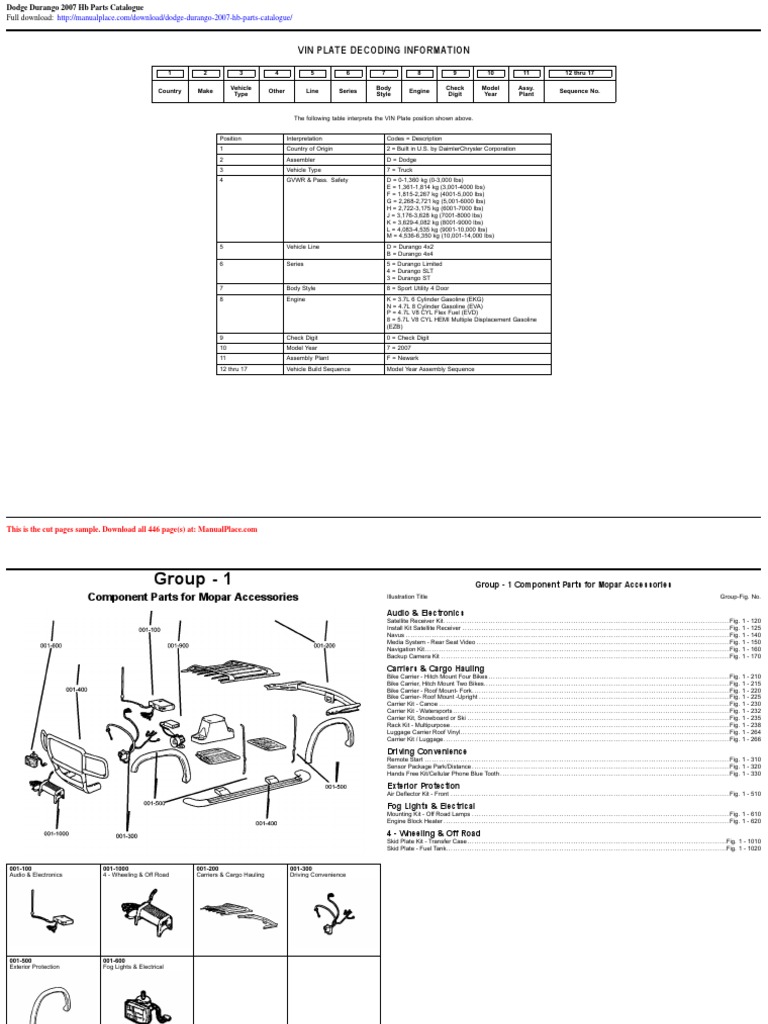 Dodge Durango 2007 Hb Parts Catalogue Service Manual Download Marketplace