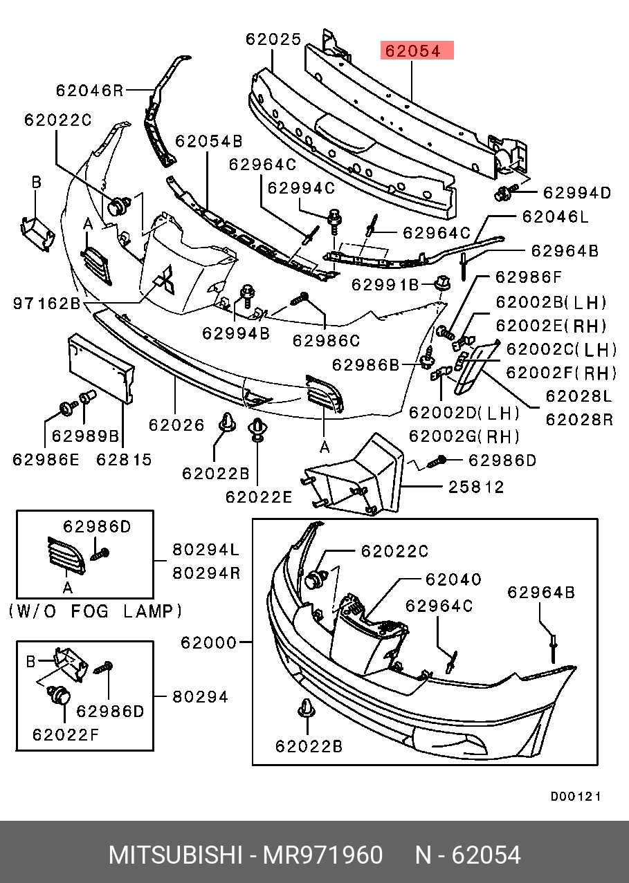 Mitsubishi OUTLANDER 0307 BUMPER REINFORCEMENT FRONT MR971960