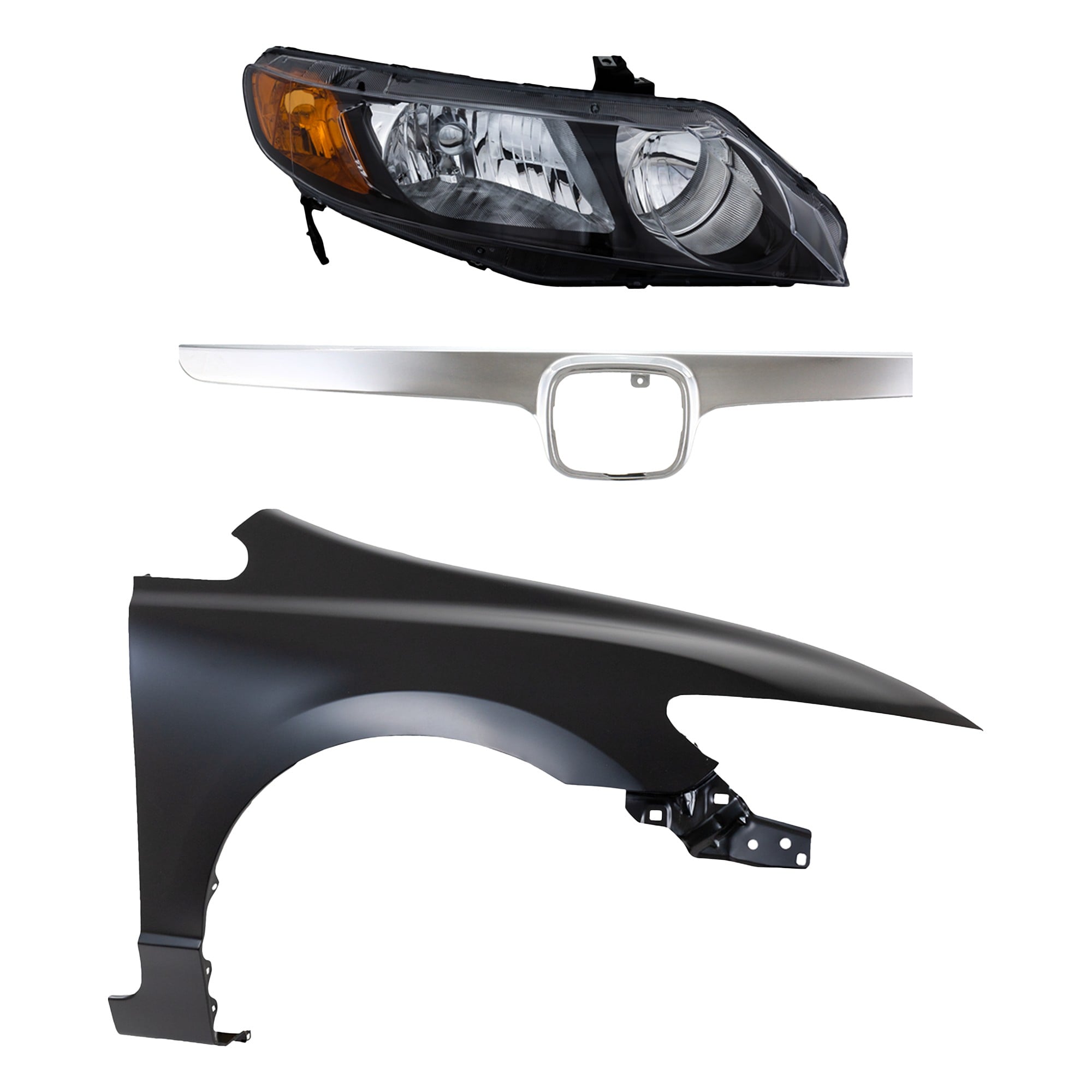 Grille Kit for 20072008 Honda Civic, Includes Painted Silver Shell and