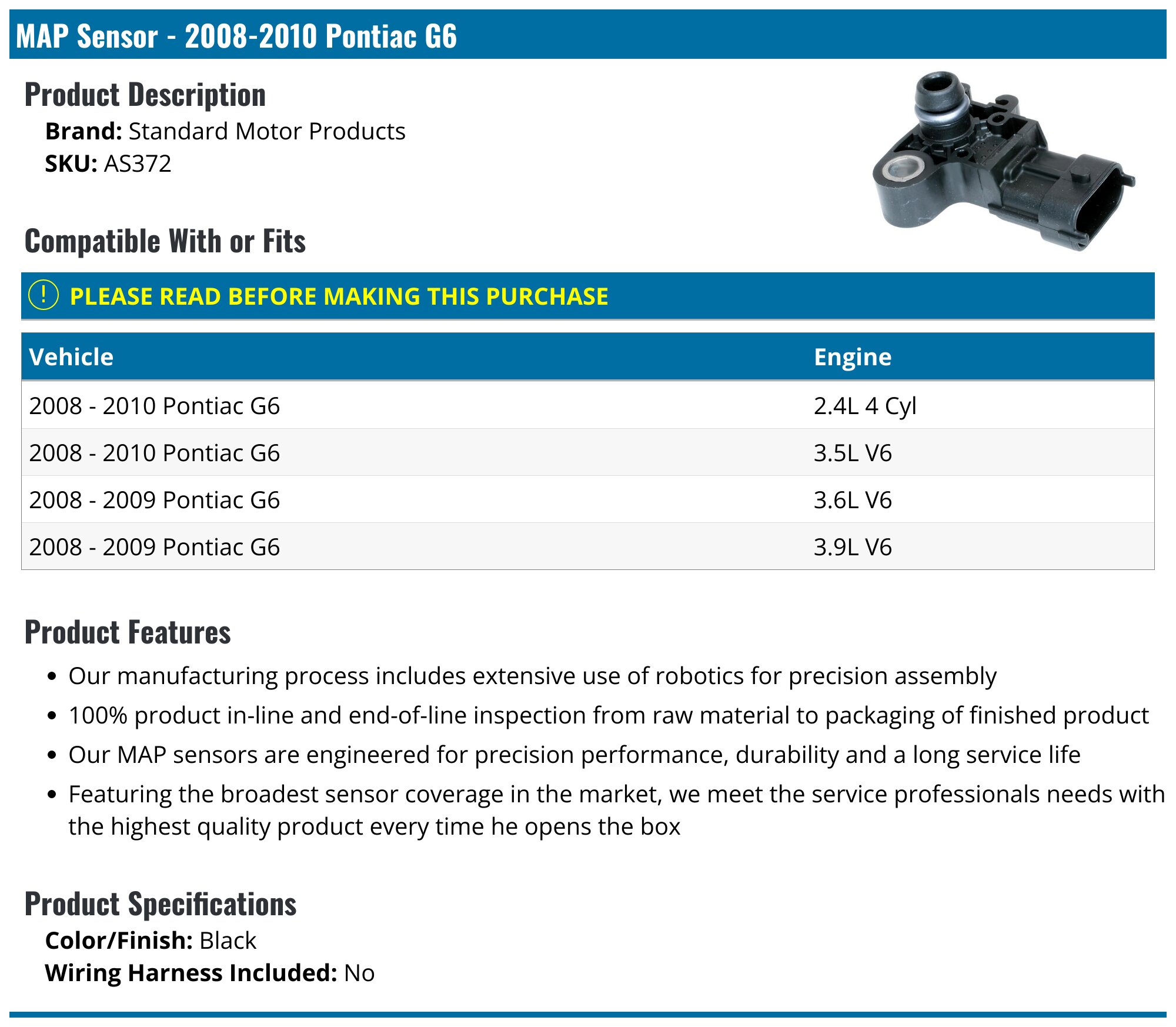 20082010 Pontiac G6 MAP Sensor Standard Motor Products AS372