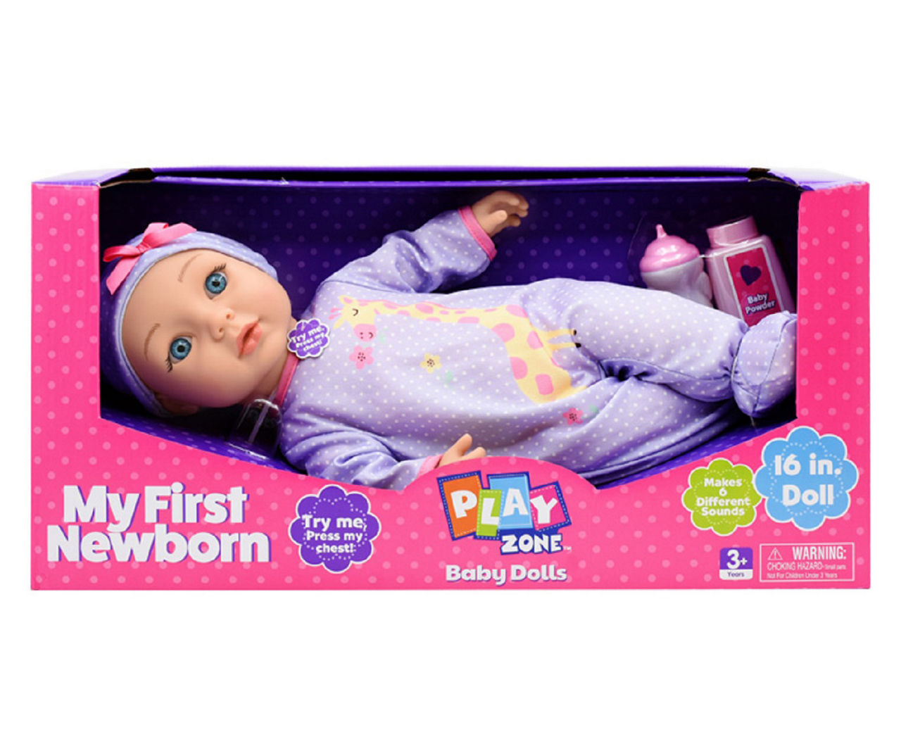 Play Zone My First Newborn 16" Purple Giraffe Outfit Talking Baby Doll