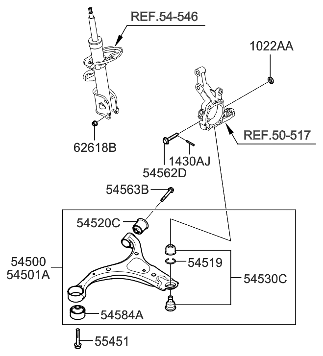 2010 Hyundai Santa Fe Front Suspension Lower Arm