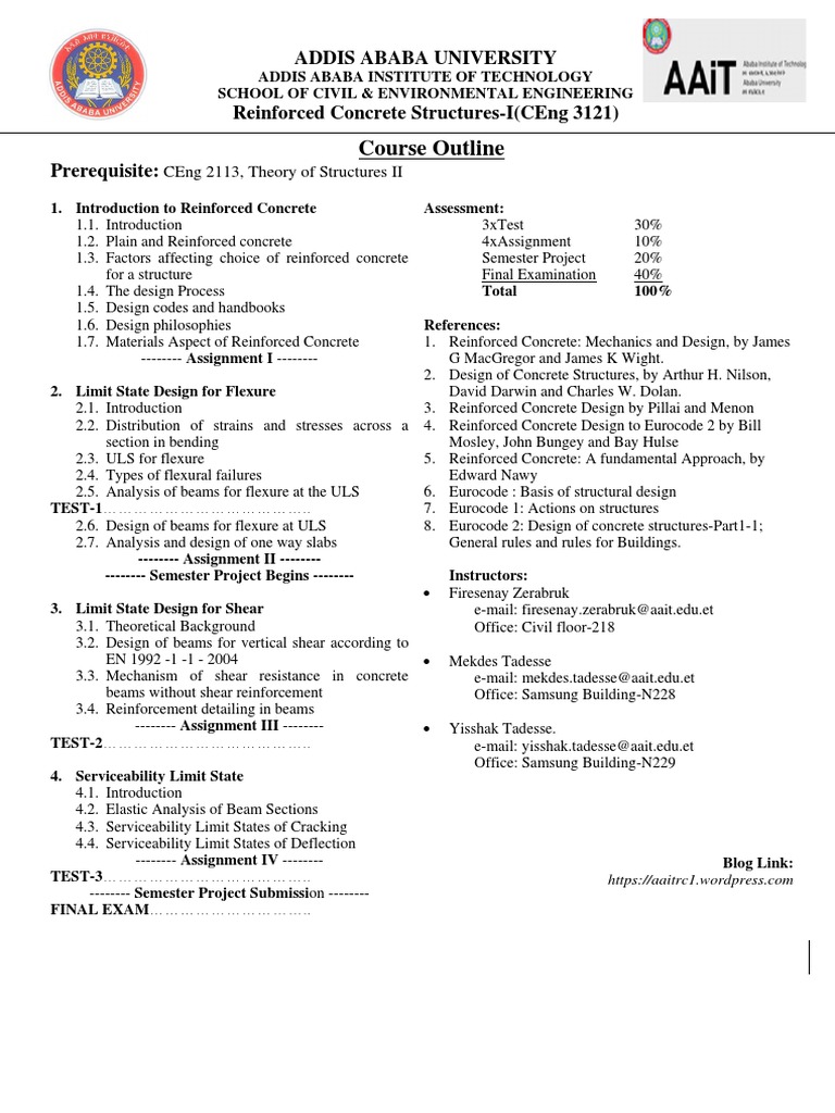 Rc1 2015 16 Course Outline PDF Beam (Structure) Bending
