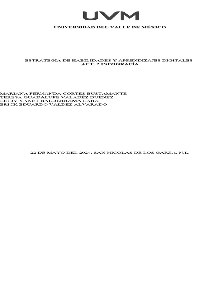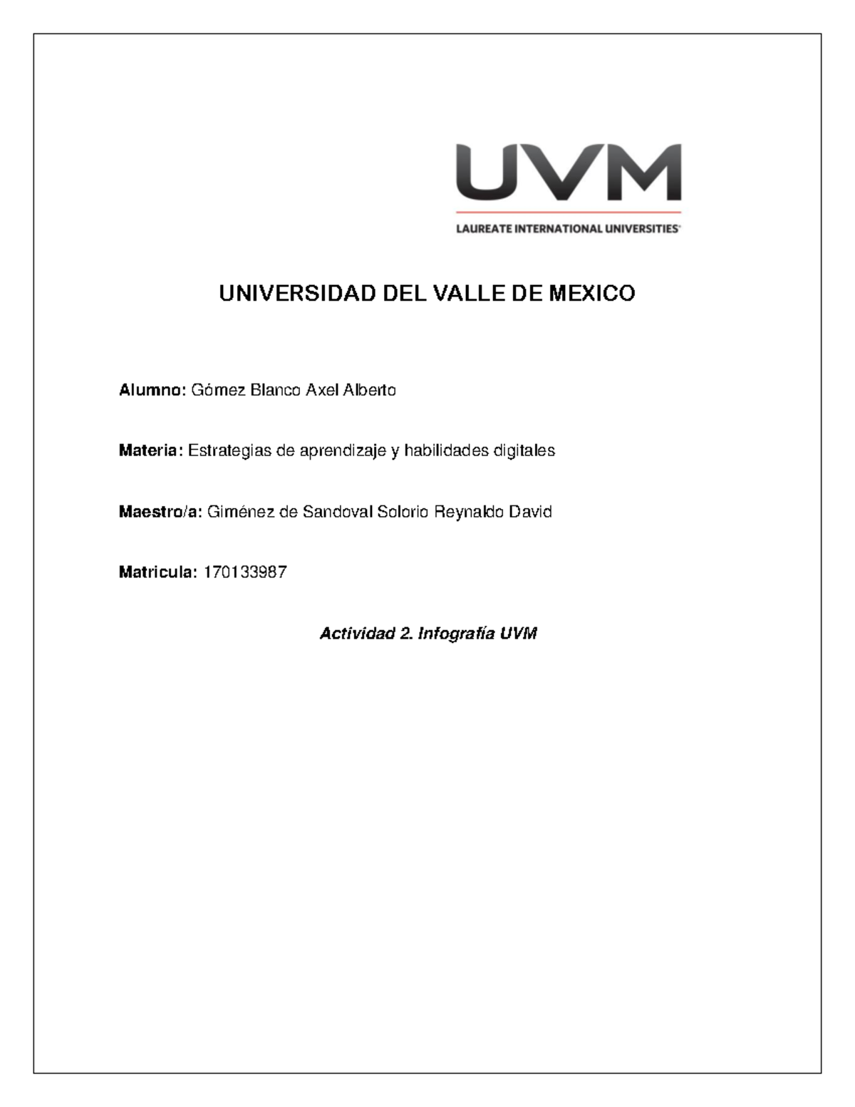 Act 2 Infografía UVM UNIVERSIDAD DEL VALLE DE MEXICO Alumno Gómez