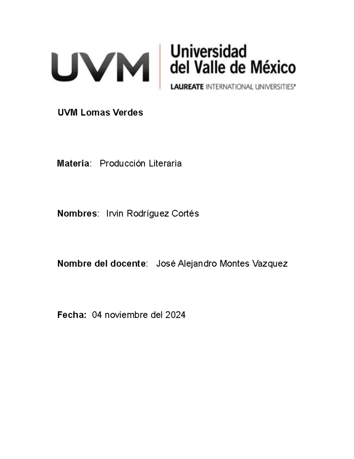 Lista de Cotejo Producción Literaria (UVM) "Viajes" Studocu