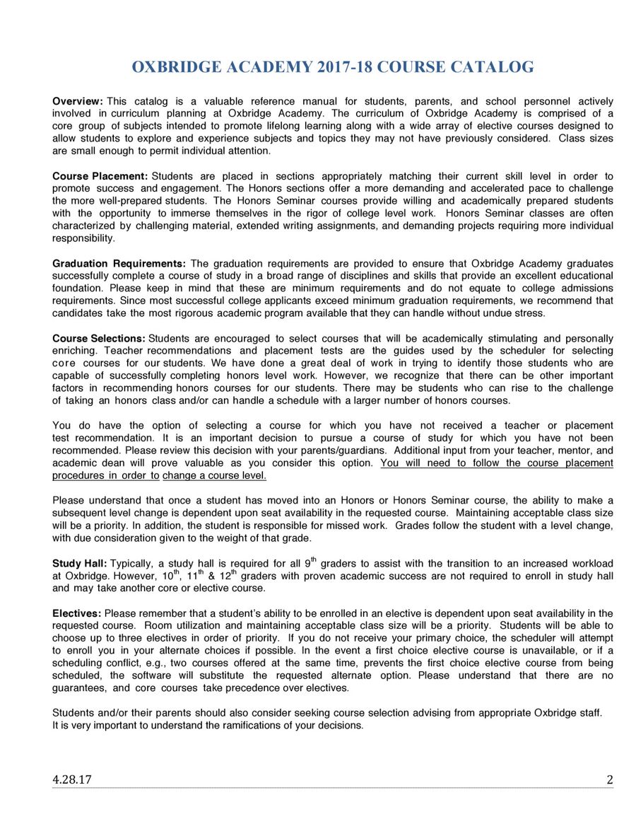 Oxbridge Academy 20172018 Course Catalog by Oxbridgeacademy3151