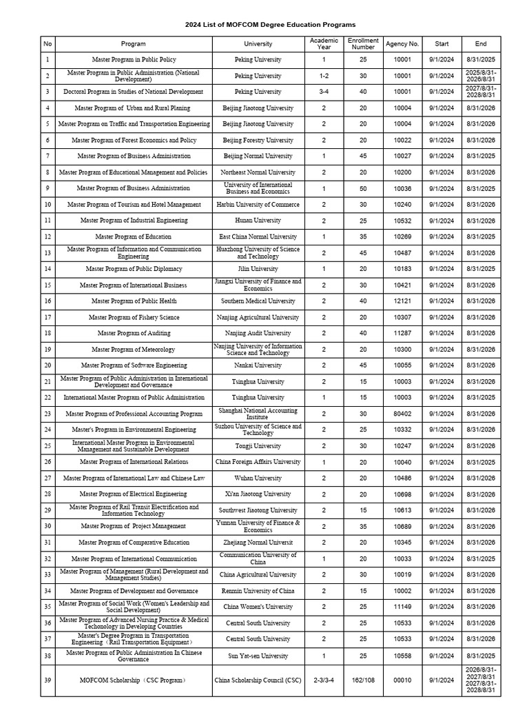 Annex I 2024 List of Degree Education Programs CSC Program