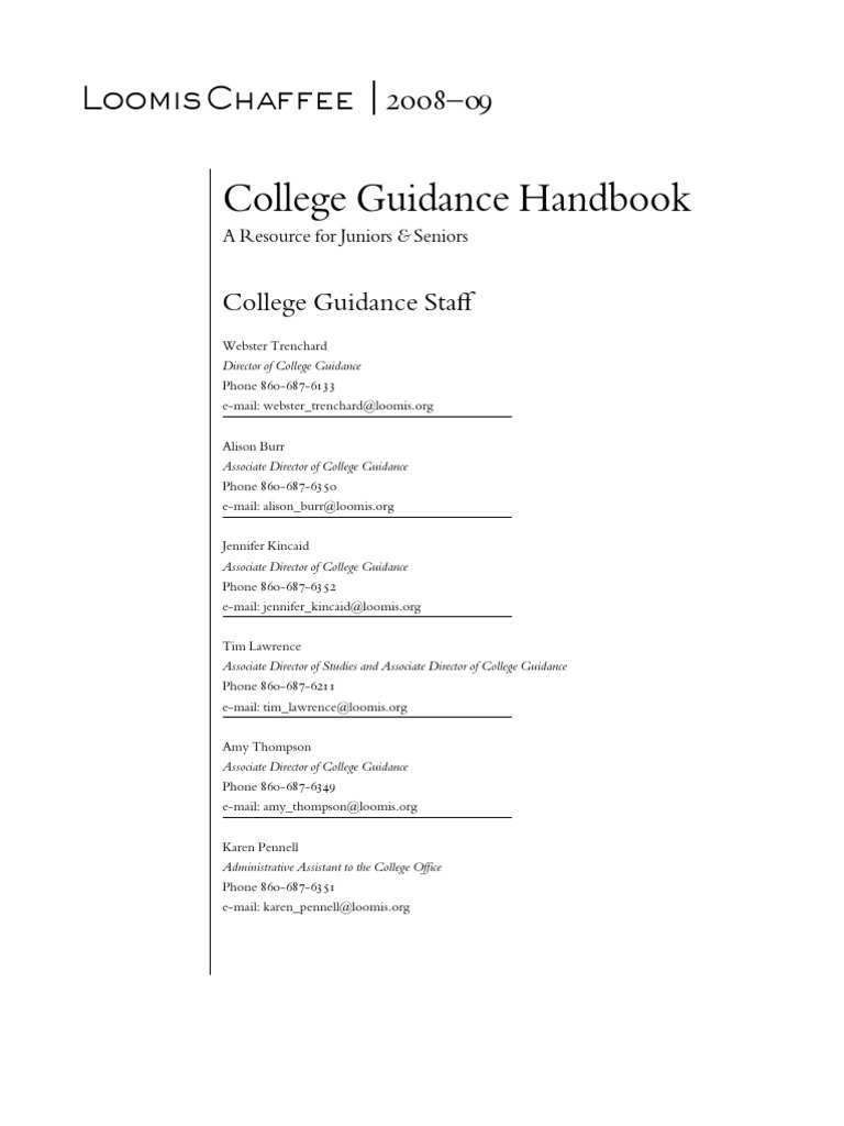 LoomisChaffee School College Handbook 08 09 PDF University And