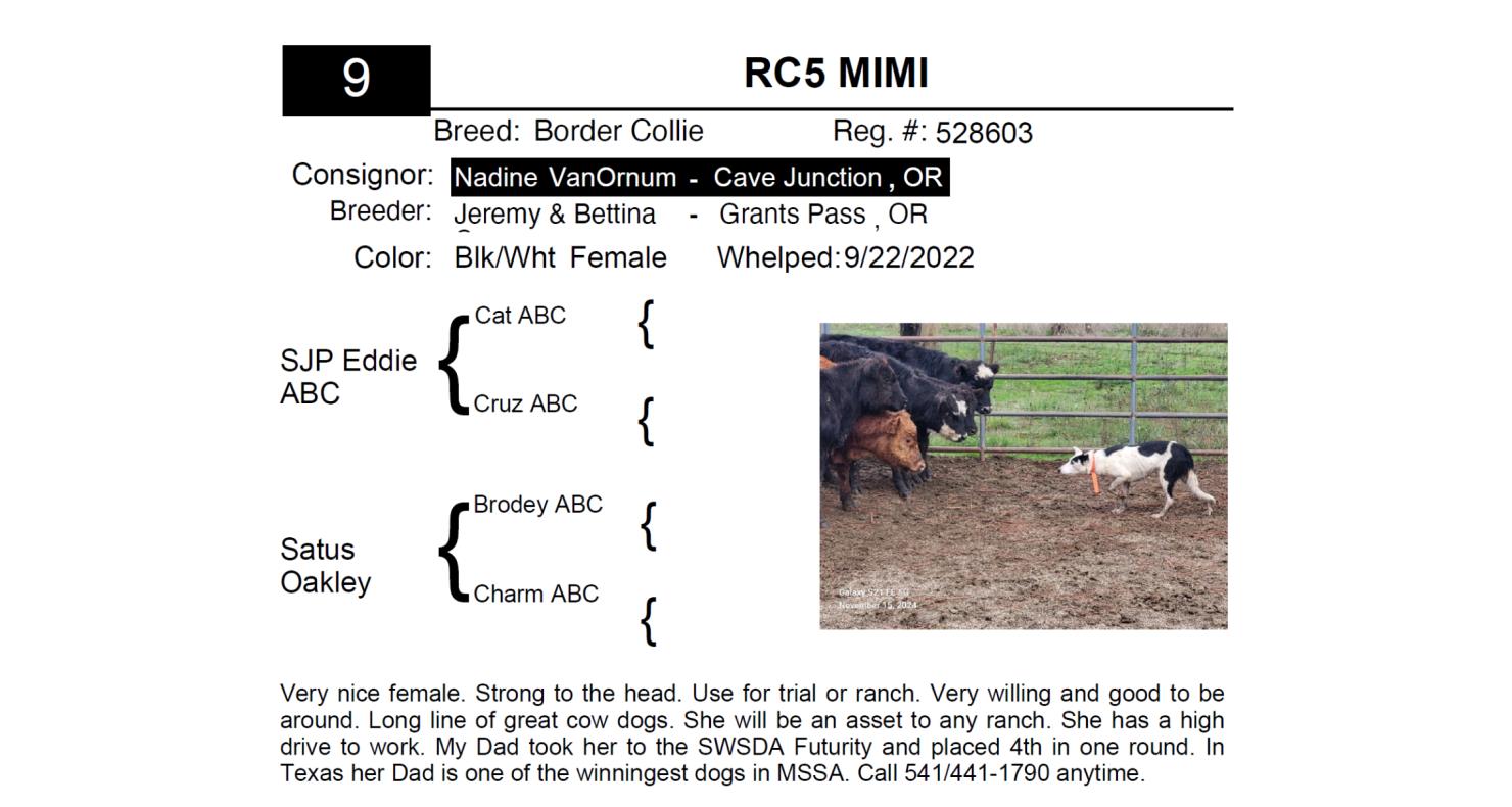 Lot d9 Red Bluff Bull & Gelding Sale Annual Stock Dog Sale DVAuction