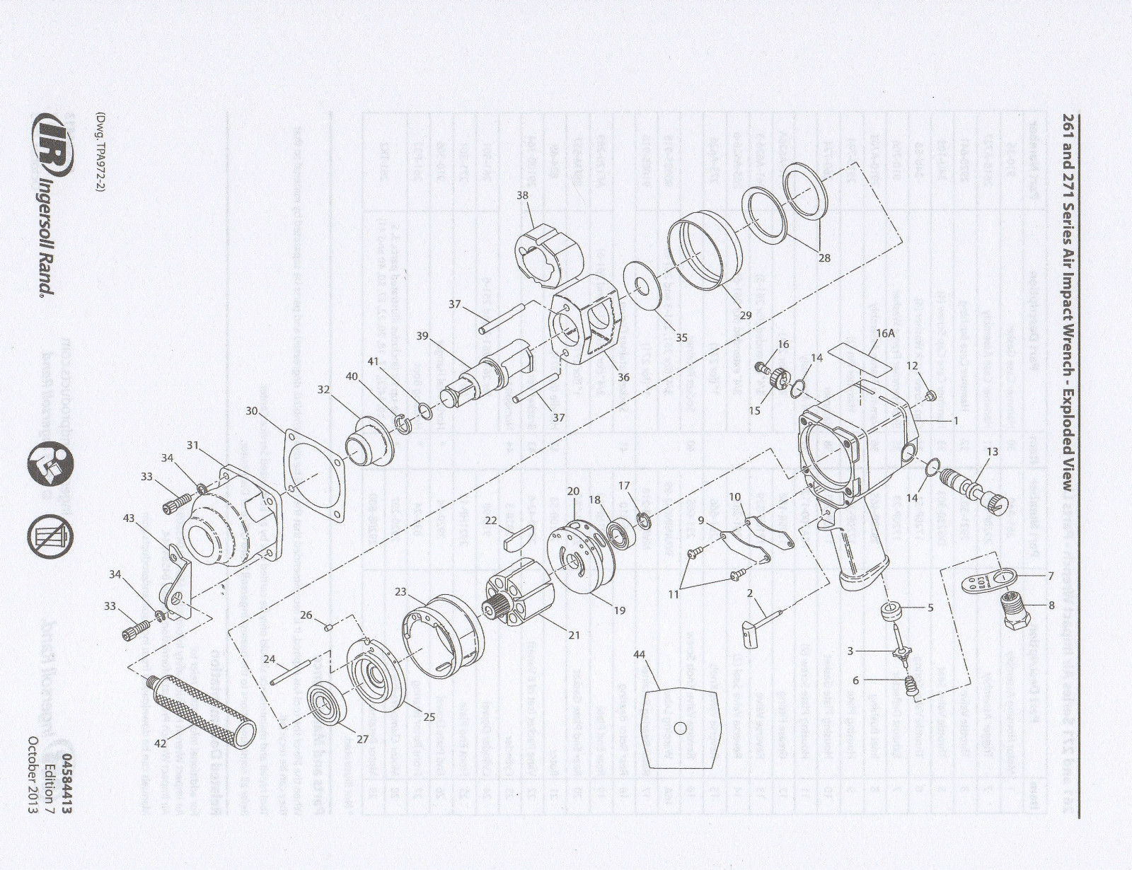 IngersollRand 261 3/4" Drive Air Impact Wrench Repair Parts PDF