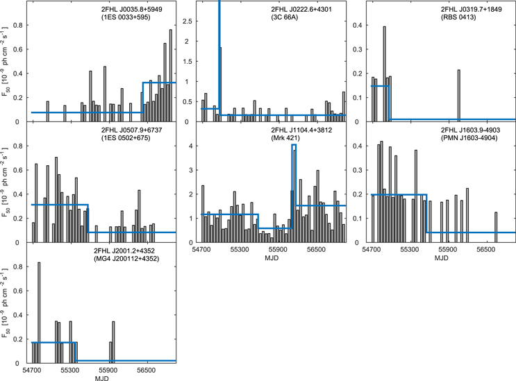 2FHL HBL sources with F (> 50 GeV) ≥ 1.8 × 10 −11 photon cm −2 s −1 and