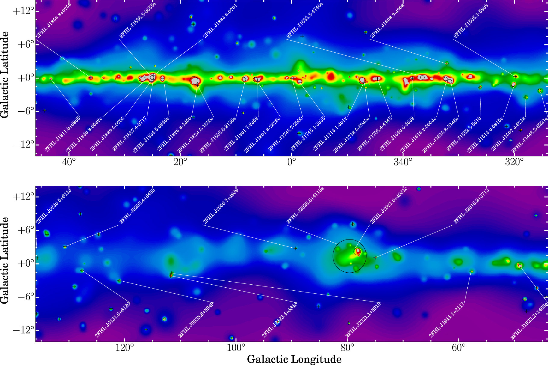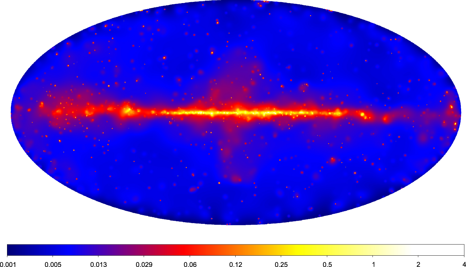 Sky map, in Galactic coordinates and HammerAitoff projection, showing