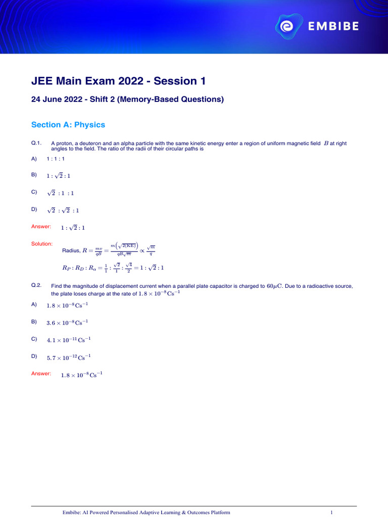 24 June 2022 Shift 2memory Based Questions PDF Sodium Bicarbonate