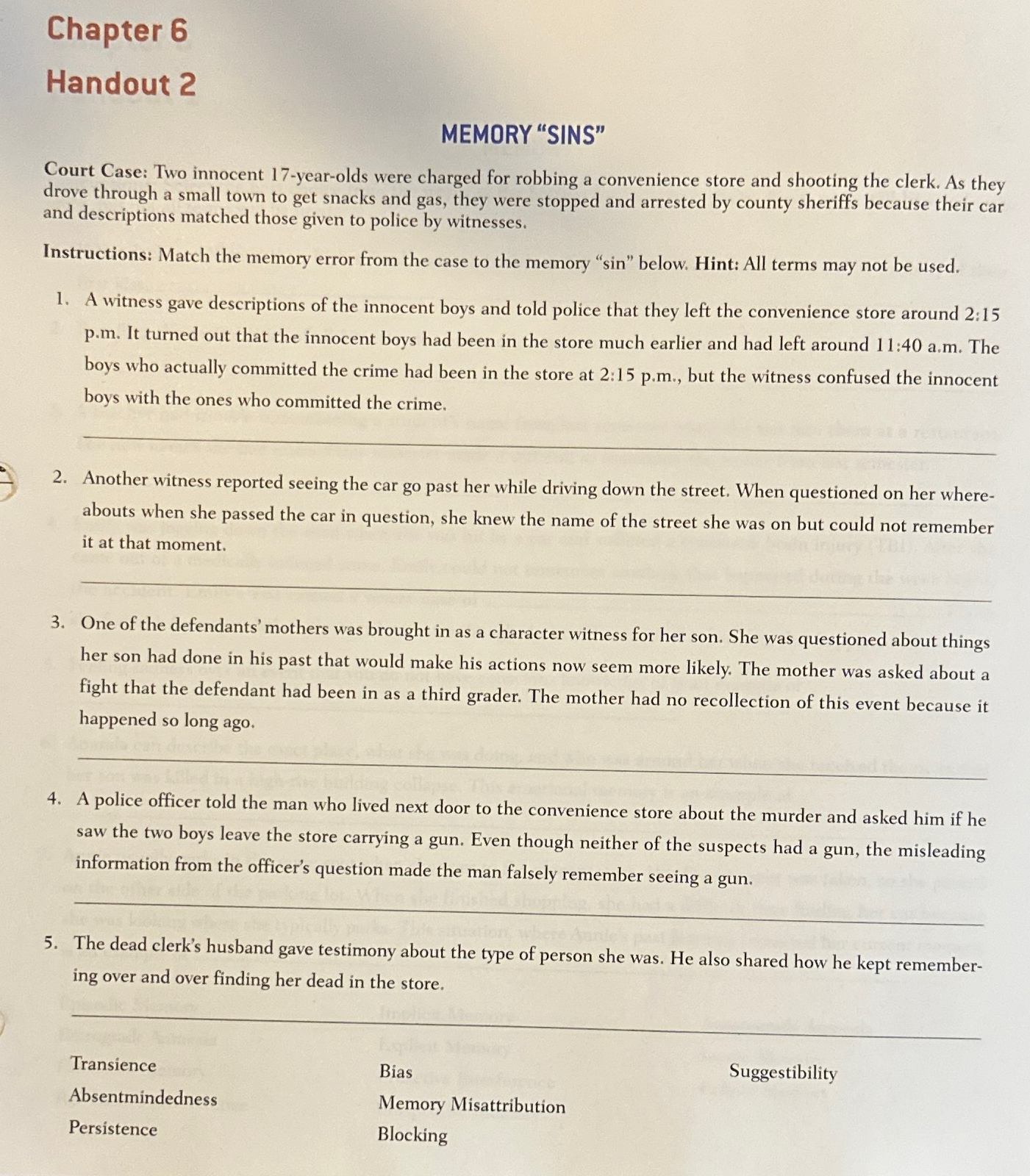 Solved Chapter 6 Handout 2MEMORY "SINS"Court Case Two
