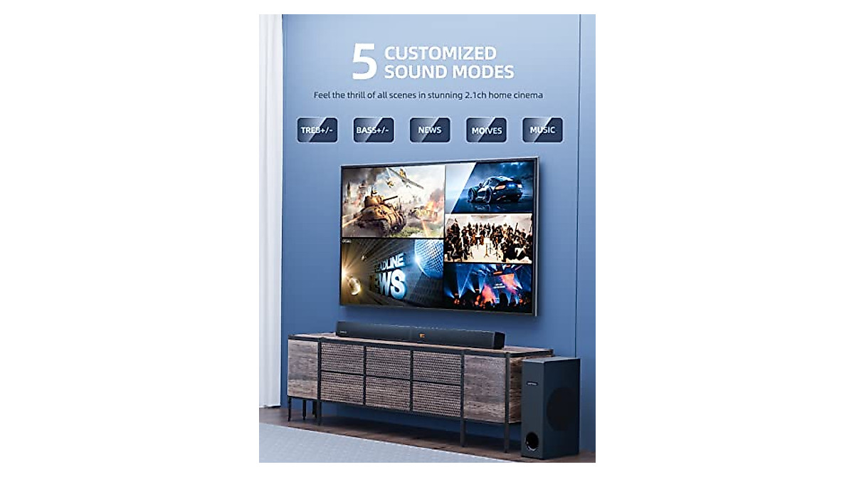 Soundbar, 37 Inch Sound Bars for TV with Builtin 6 Speakers & 4