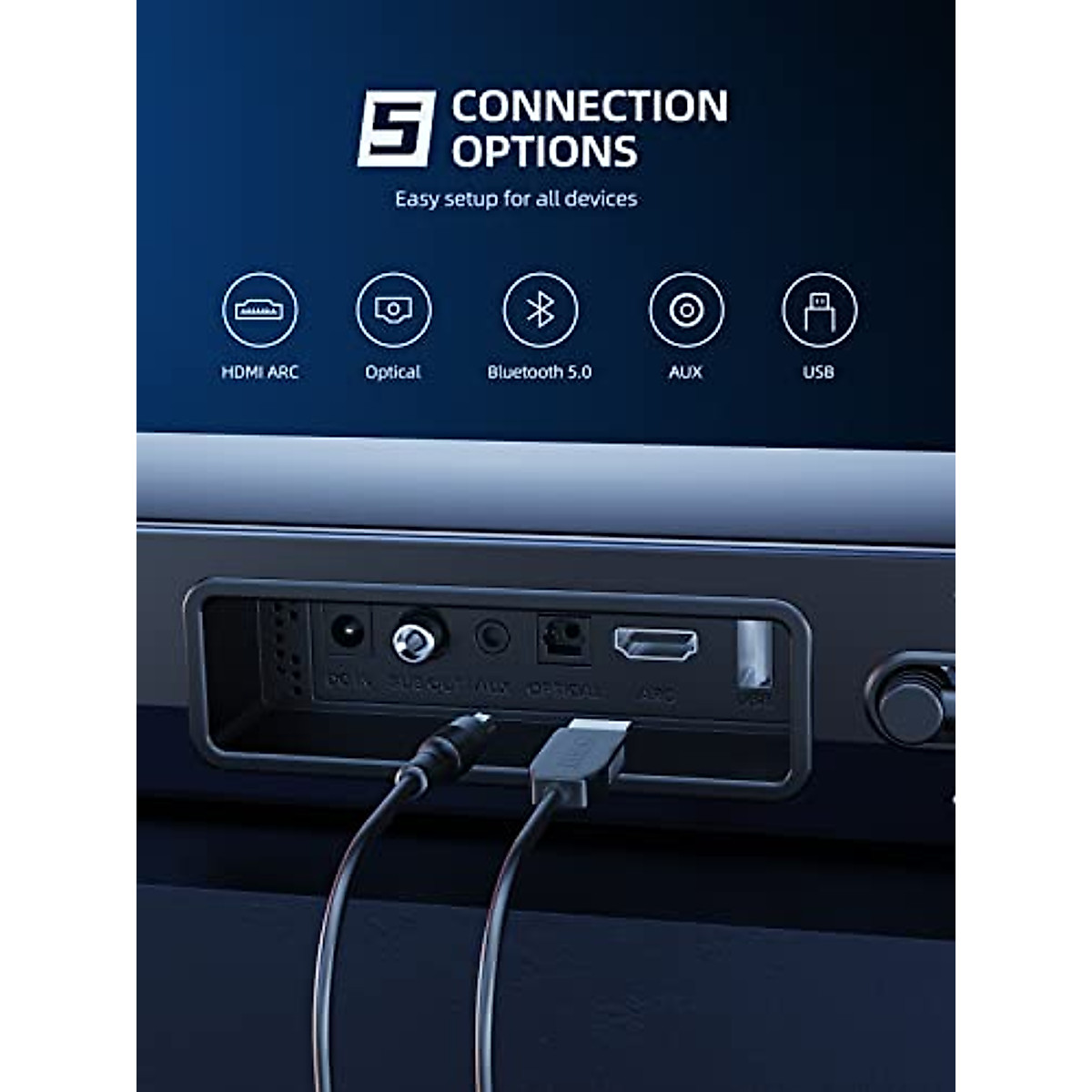 SAKOBS 37inch Sound Bar for TV, Wired & Wireless Bluetooth 5.0 60W, B