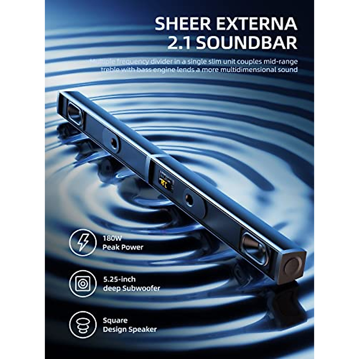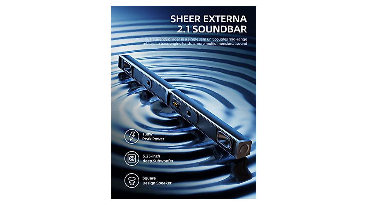 Soundbar, 2.1 Speaker with Dolby Atmos, 190W Six Speakers 37 inch Sound