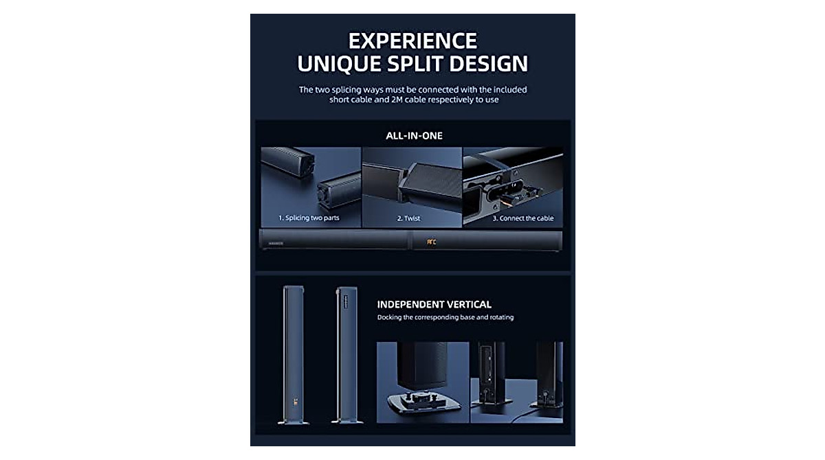 2 in 1 Separable Sound Bars for TV, Bluetooth 5.0 Surround Sound System