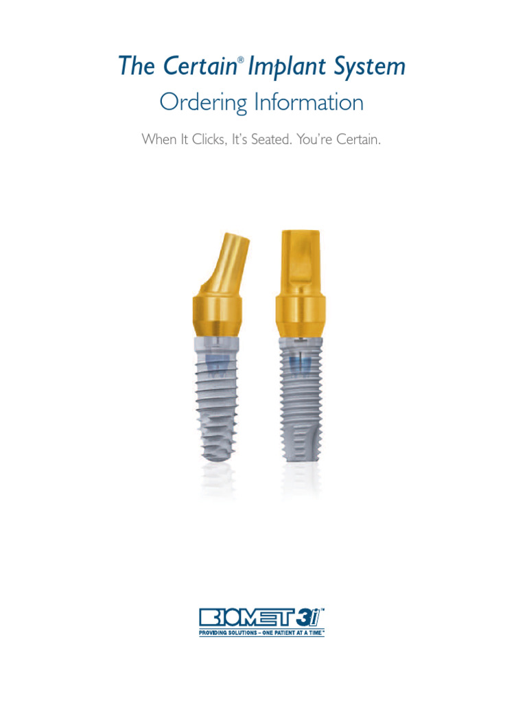 3i Certain Implant System Ordering Information ART1048 PDF Screw