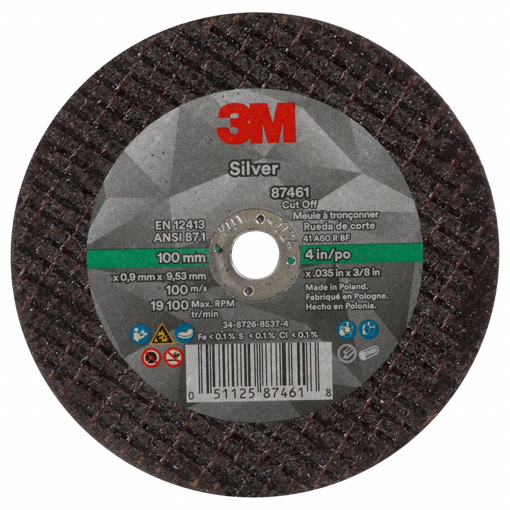 3M Silver Depressed Center Grinding Wheel, 87397, T27 Quick Change, 4.5