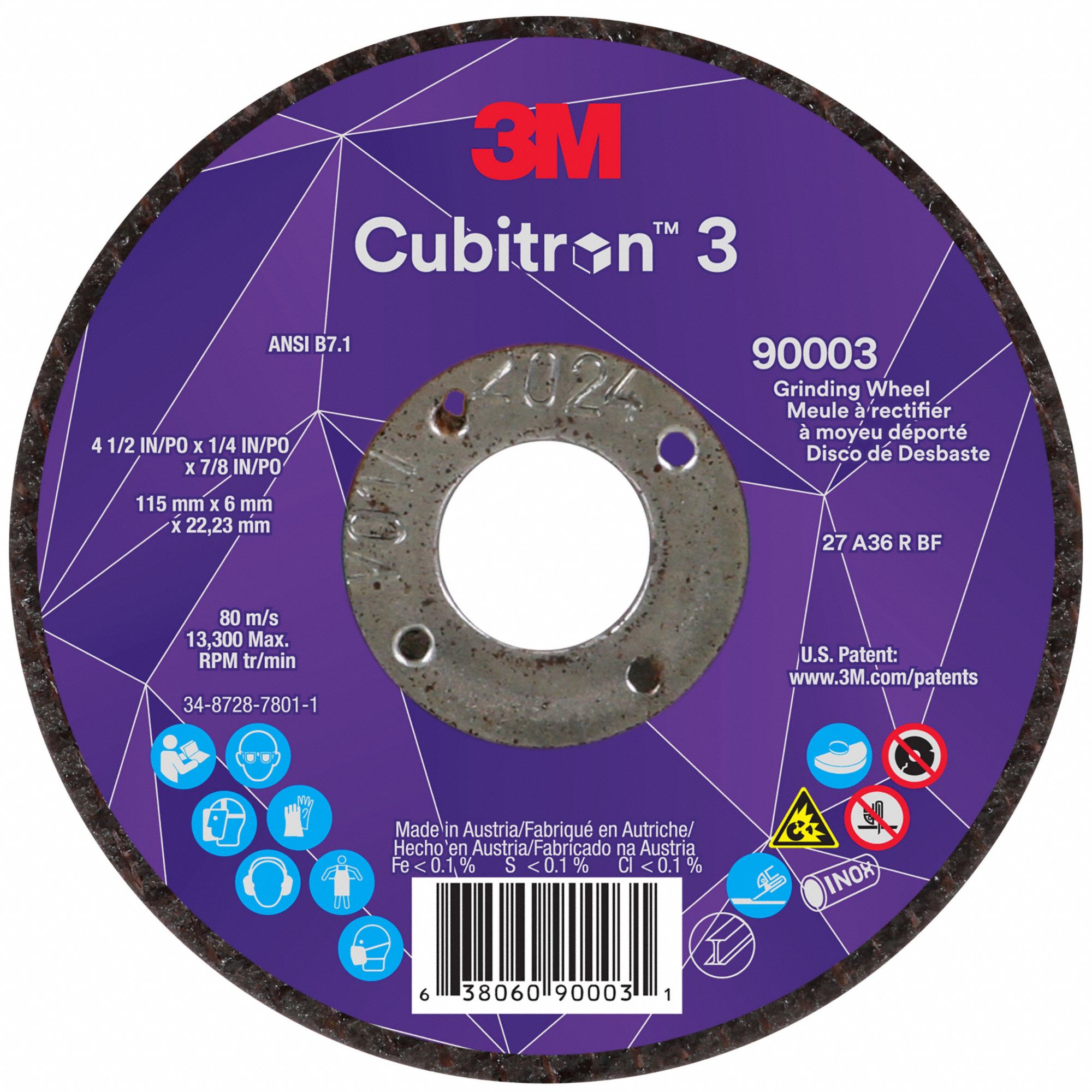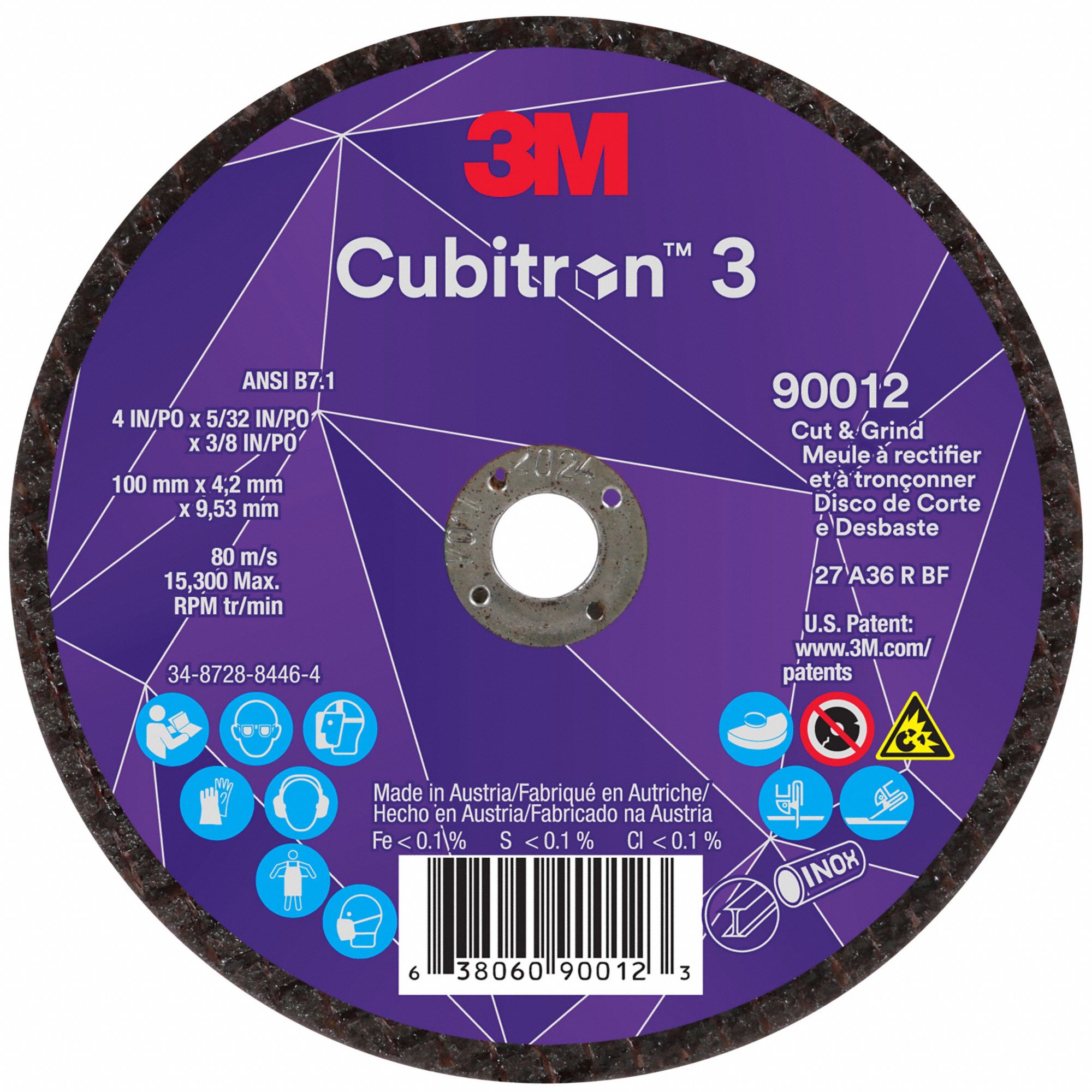 3M CUBITRON 3, Type 27, 4" x 5/32" x 3/8", CutOff and Grinding Wheel