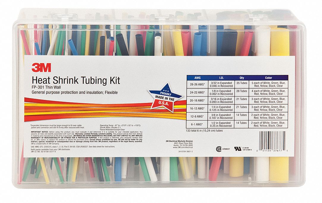 3M, Heat Shrink Tubing Kit 4NU23FP301 COLOR Grainger