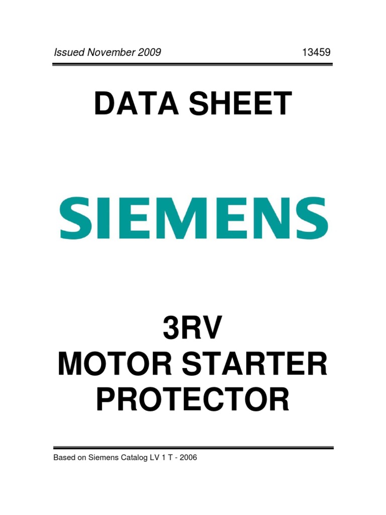 Siemens 3RV Motor Starter Protector PDF Fuse (Electrical