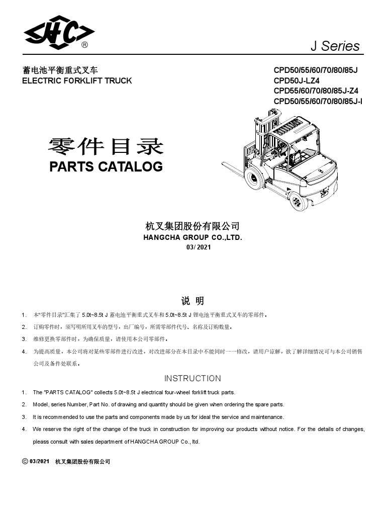 J Series 5.08.5t 4Wheel Electric Forklift Parts Catalog 2021.03.19 PDF