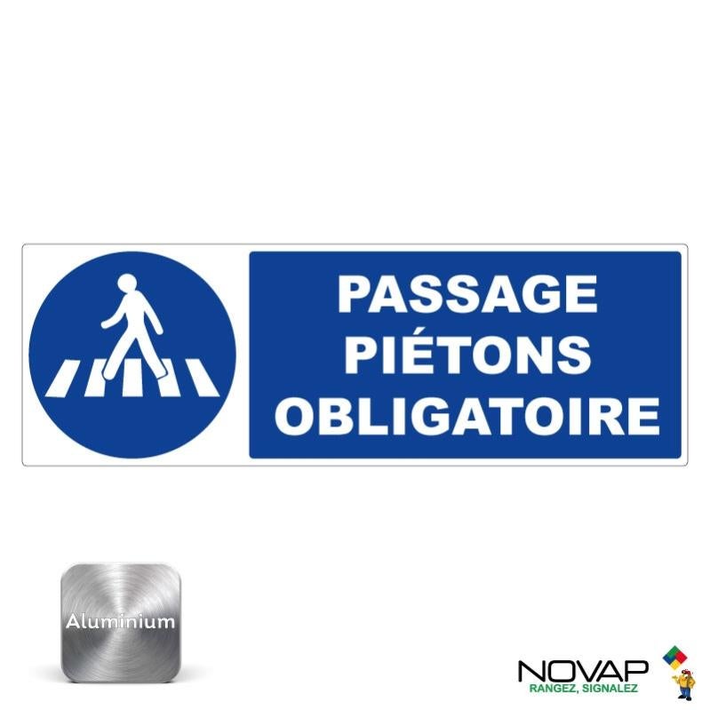 Panneau Passage Piétons obligatoire Alu 450x150mm 4012216 Leroy