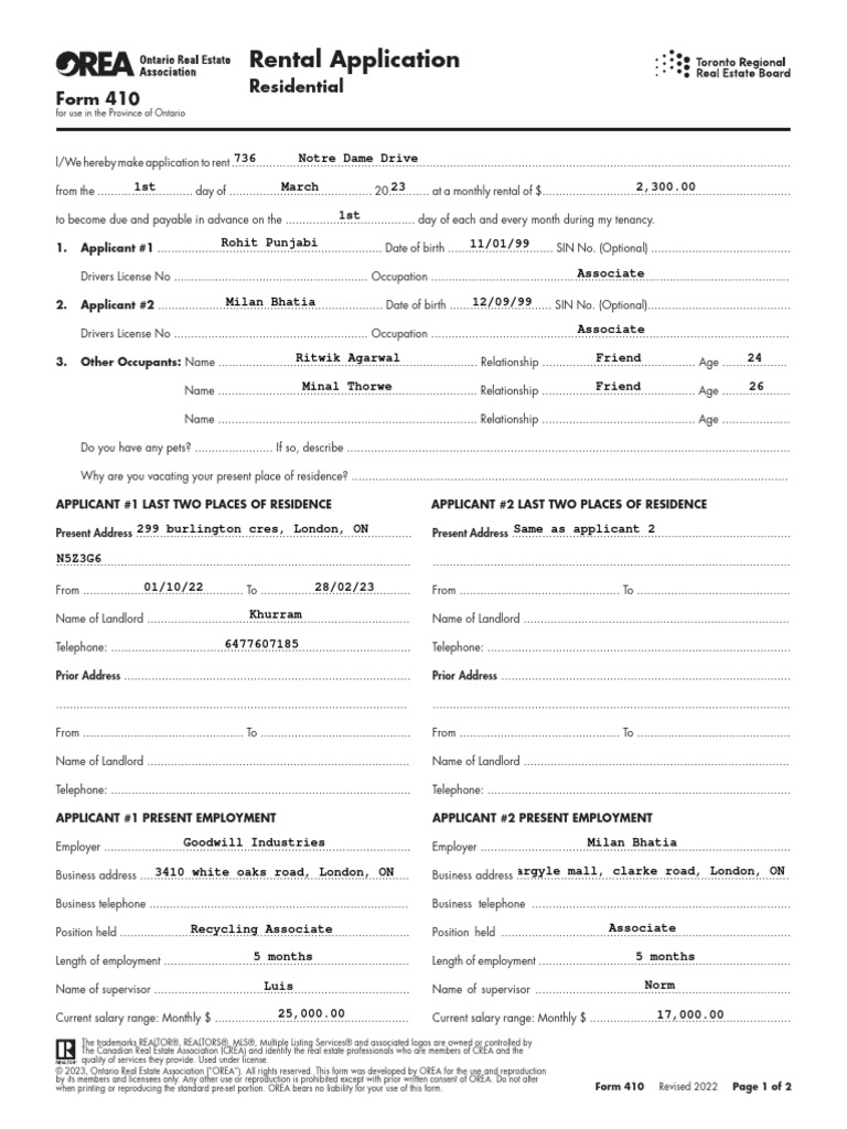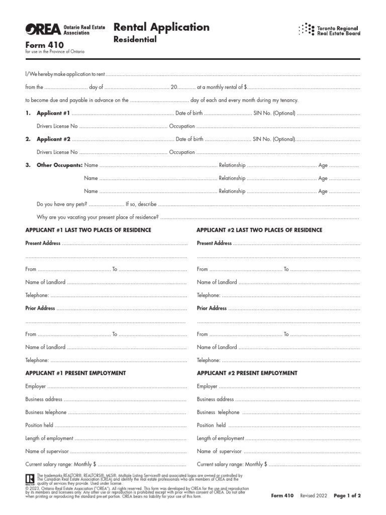 (Toronto) 410 Rental Application Residential PDF Landlord