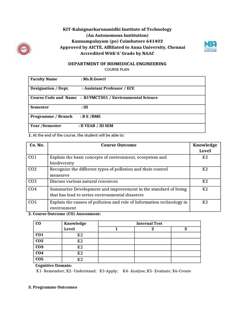 Evs Course Plan Bme II 20222023 PDF Engineering Biodiversity