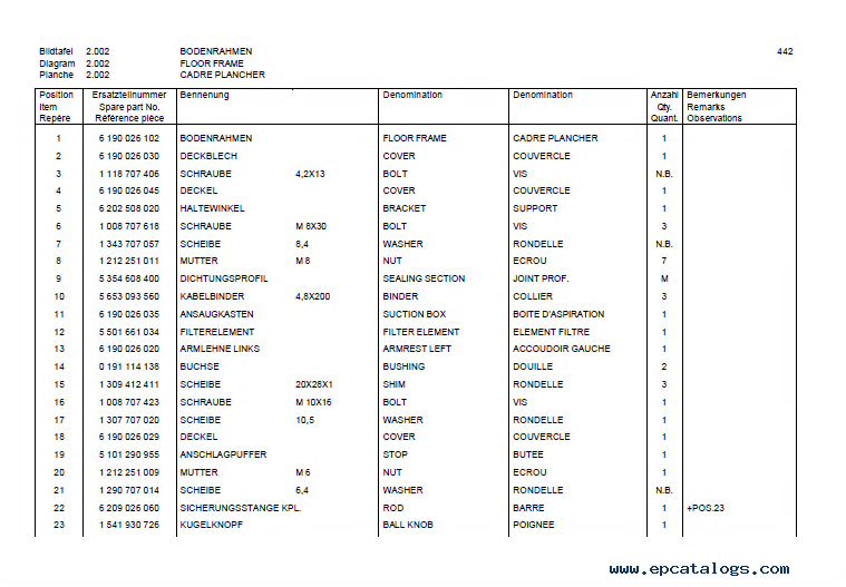 Pottinger Agricultural Novacat 442 Parts Catalog