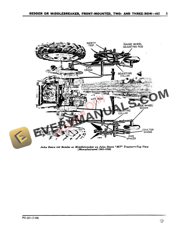 John Deere FrontMounted Bedder or Middlebreaker 442 Parts Catalog