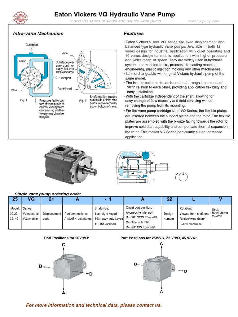 Vickers VQ Vane Hydraulic Pump 20VQ 25VQ 35VQ 45VQ Series High