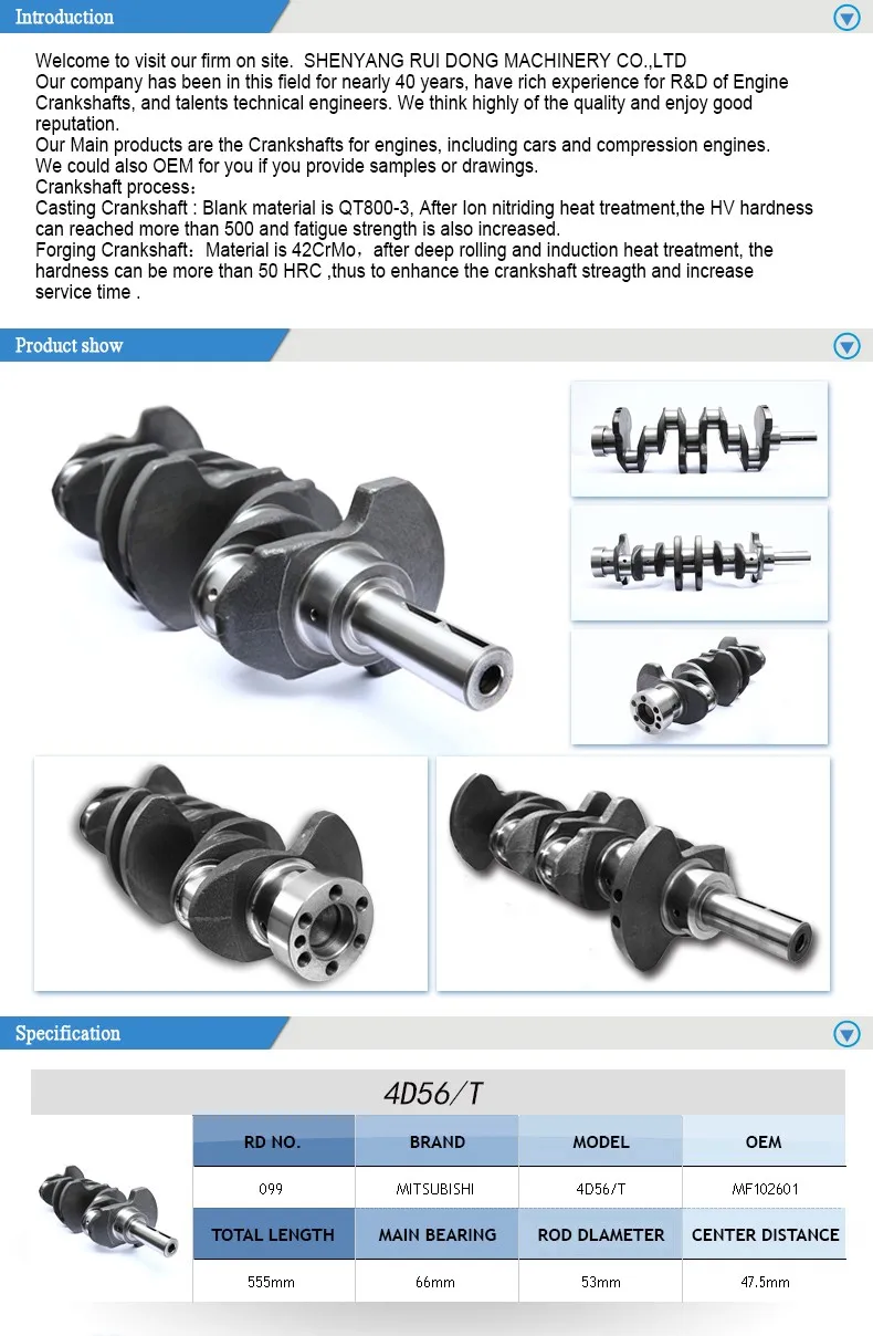 Mitsubishi Parts Crankshaft 4D56 4D34 4D34T S6KT Engine Parts