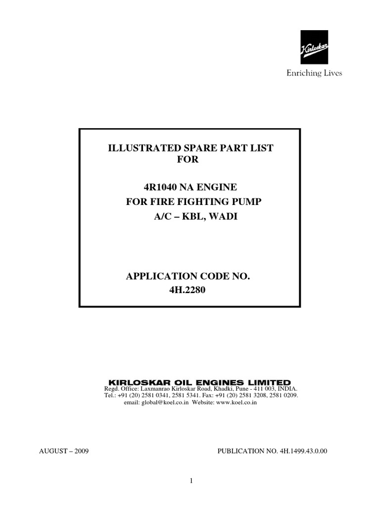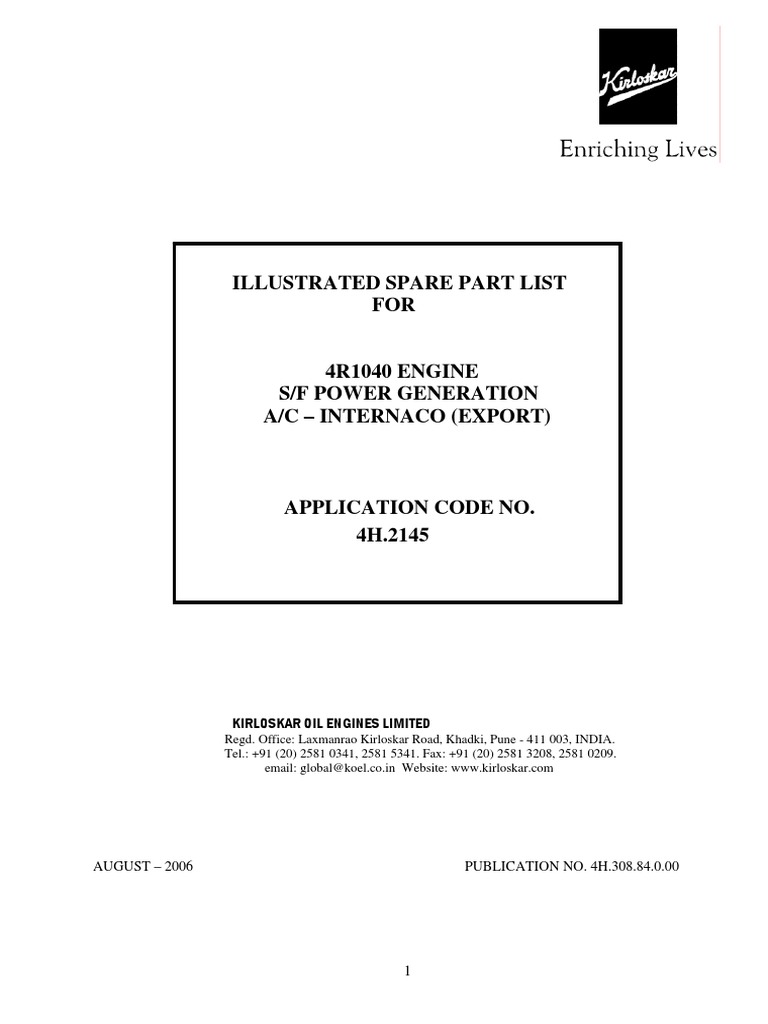 4R1040 Kirloskar Engine Parts Catalog