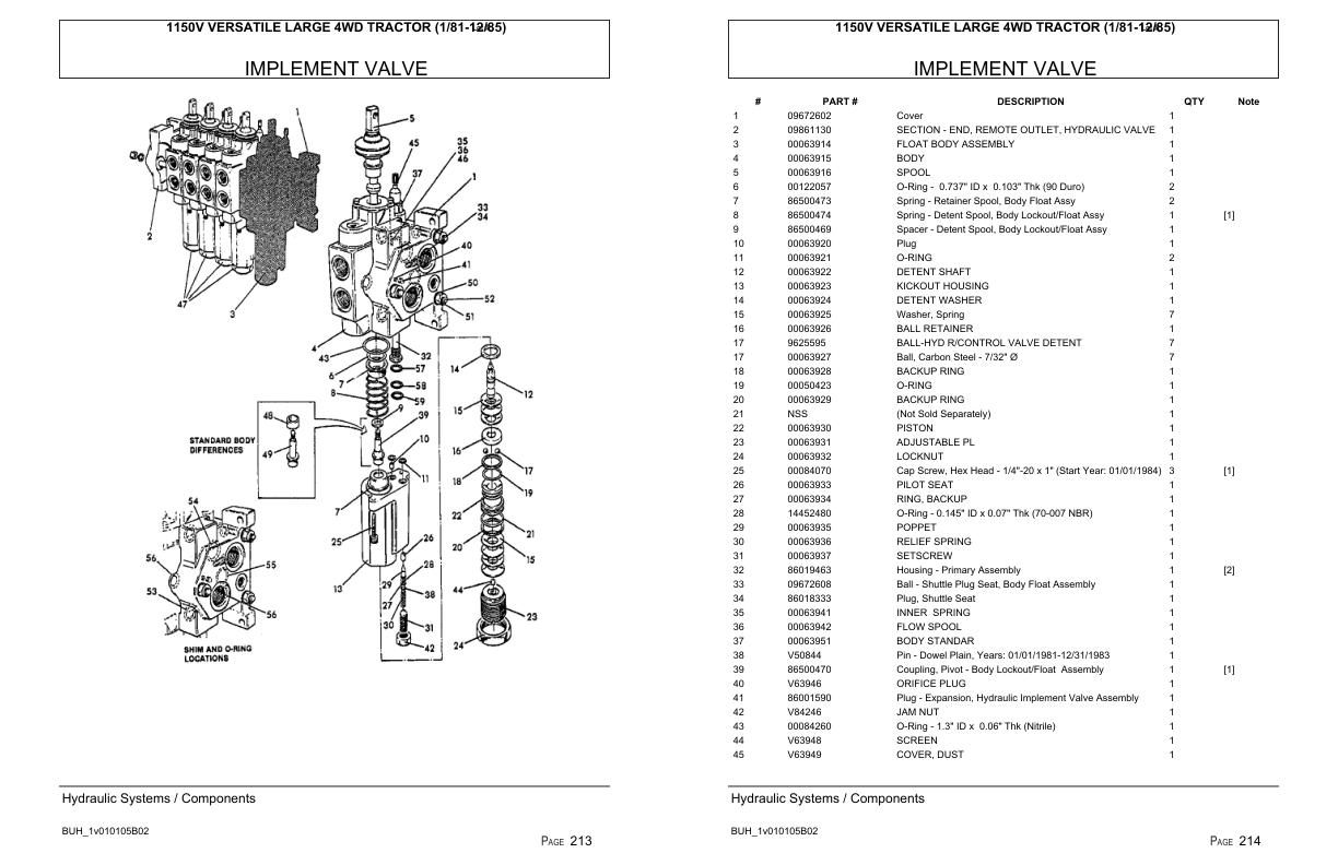 Versatile Tractor 1150V Large 4WD Parts Catalog 19811985