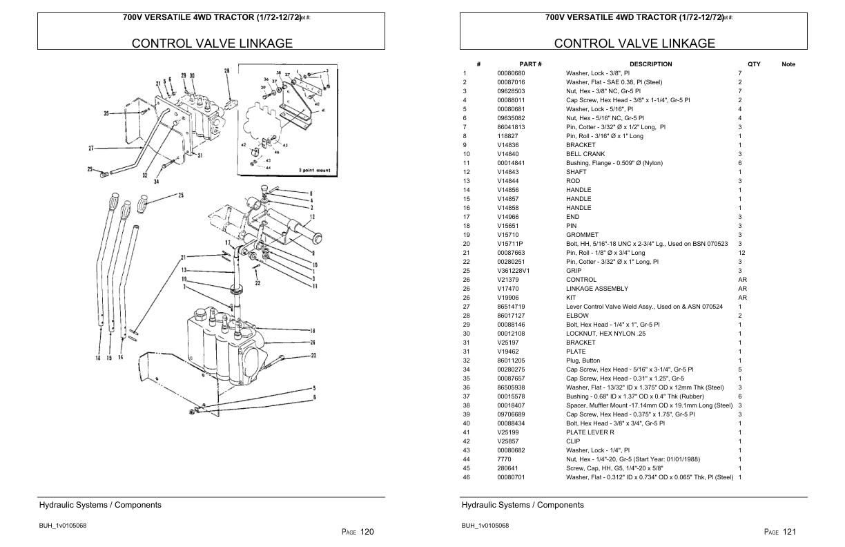 Versatile Tractor 700V 4WD Parts Catalog 1972