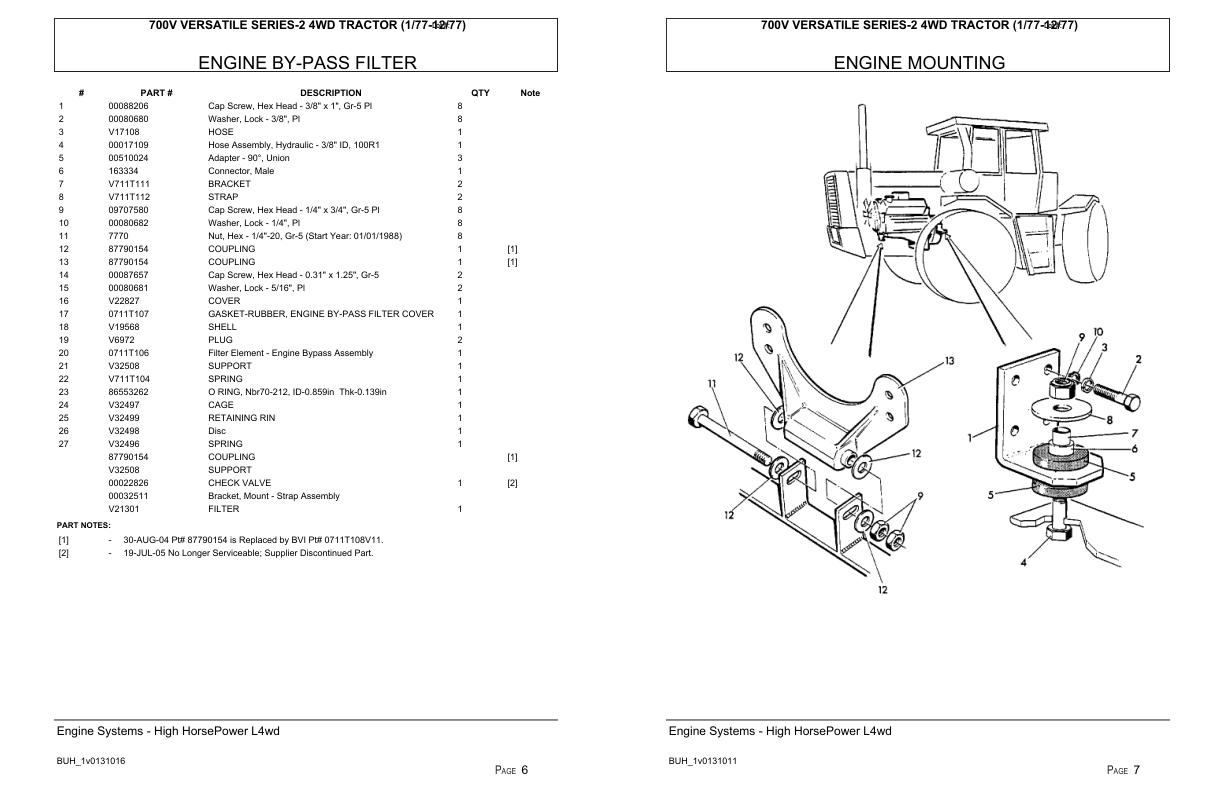 Versatile Tractor 700V Series2 4WD Parts Catalog 1977