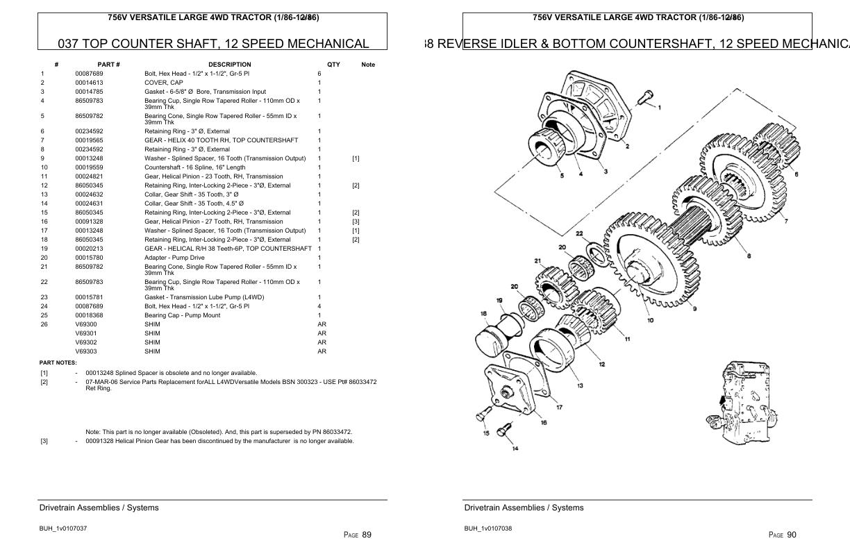 Versatile Tractor 756V Large 4WD Parts Catalog 1986