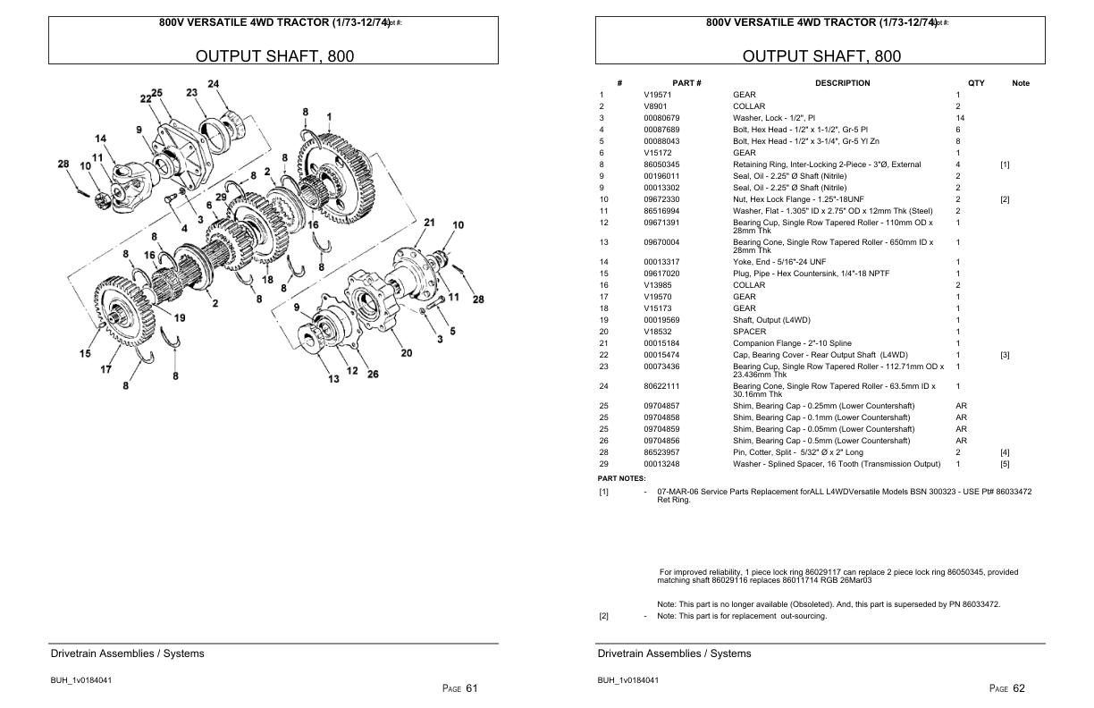 Versatile Tractor 800V 4WD Parts Catalog 19731974