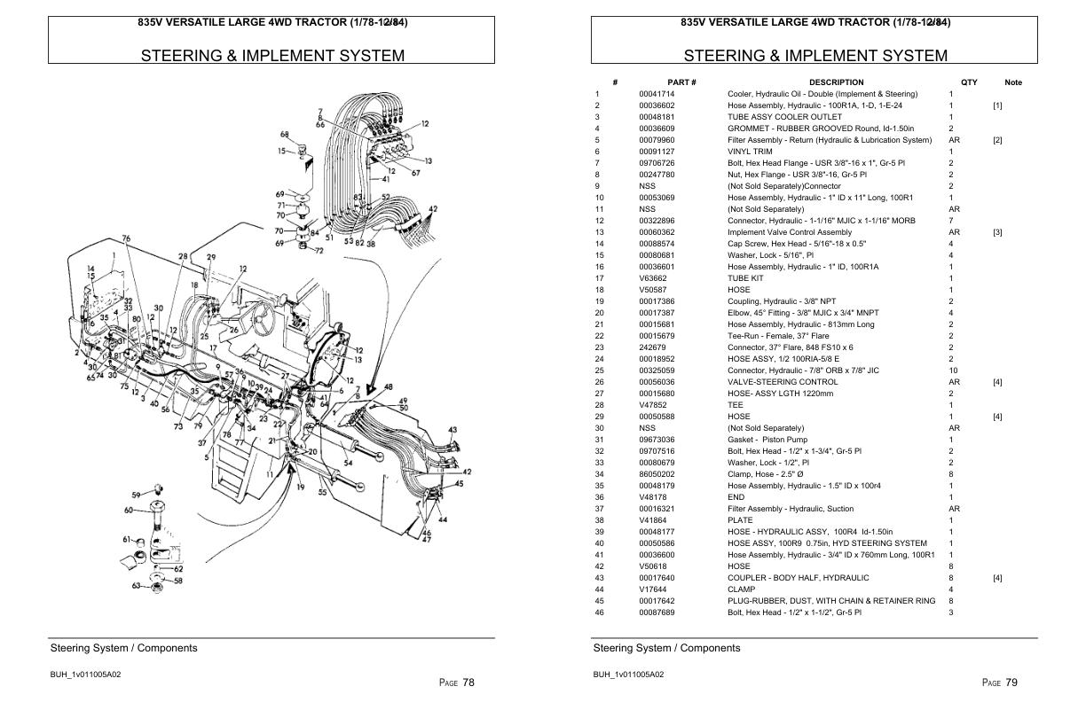 Versatile Tractor 835V Large 4WD Parts Catalog 19781984
